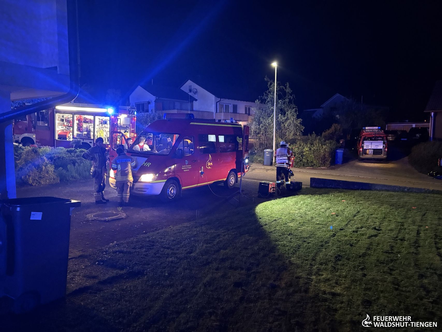 Gegen Einsatzende war auch die Hygienekomponente der Feuerwehr Waldshut-Tiengen zum Einsatz gerufen worden, da Einsatzkleidung gewechselt und Hygienemassnahmen vor Ort zur Verfügung gestellt wurden. Auch der GW-Atemschutz aus Lauchringen war hierzu mit im Einsatz und konnte Wechsekleidung ausgeben.