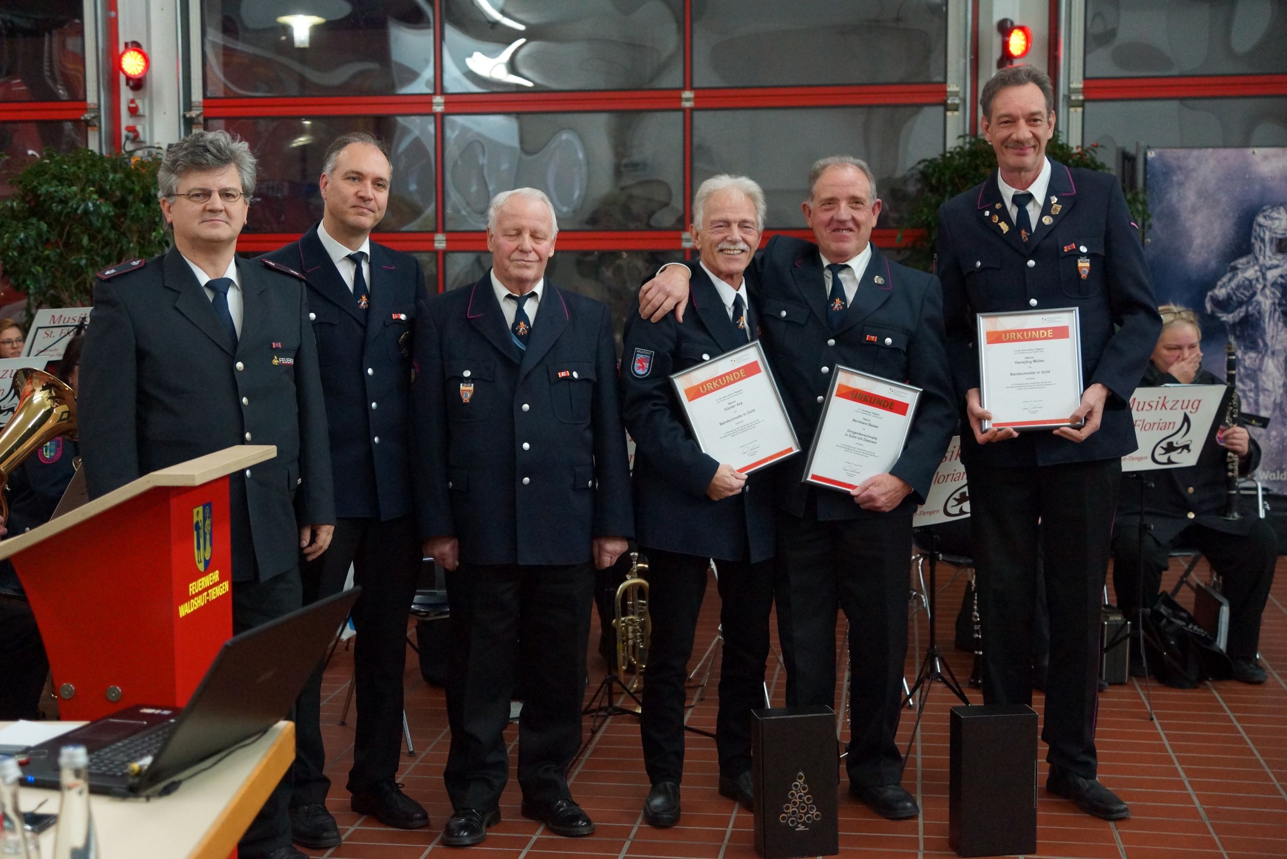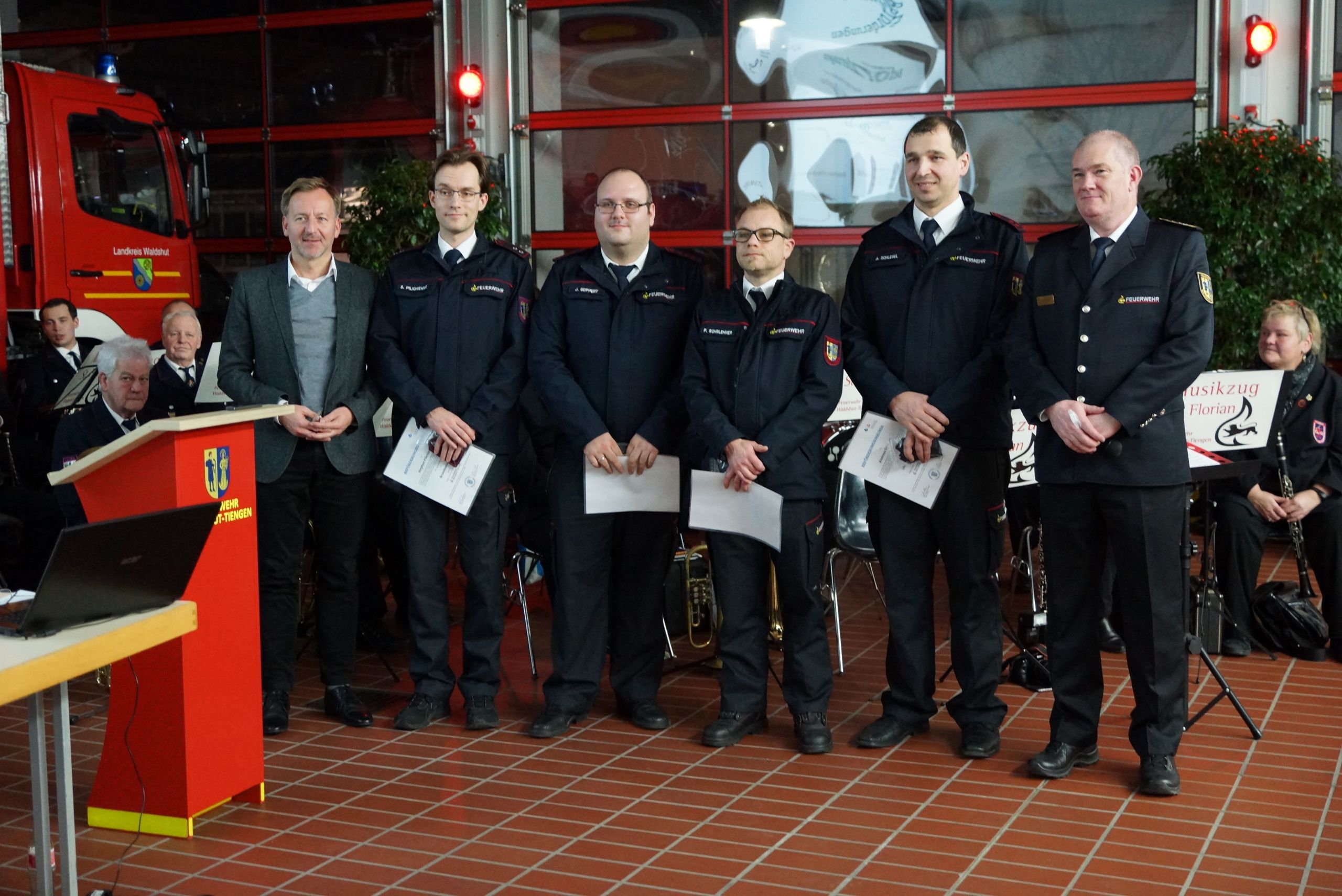 Auch der Musikzug St. Florian konnte langjährige Mitglieder für ihren aktiven Musikerdienst ehren. Kreisstabsführer Andreas Hausy führte diese Ehrungen durch.