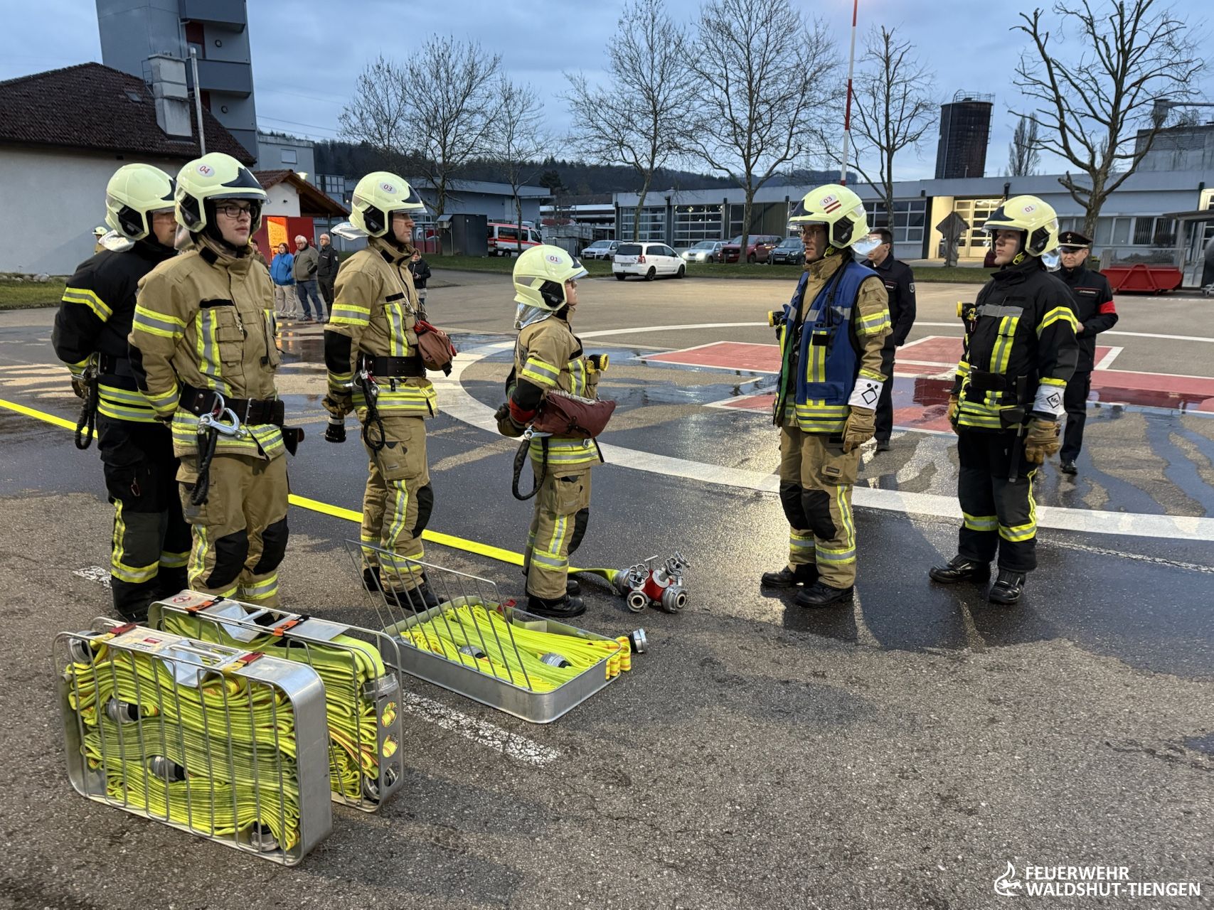 Unter den Augen der Schiedsrichter des Landkreises, wurde die Leistungsübung unter 6 Minuten und nur wenigen bzw. keinen Fehler abgelegt. Die Teilnehmer waren sichtlich erleichtert und konnten auf ihre hervorragende Leistung stolz sein. Ein großes Dankeschön dem Gruppenführer Stephan, der die Gruppe bestens auf die Prüfung vorbereitet hatte.