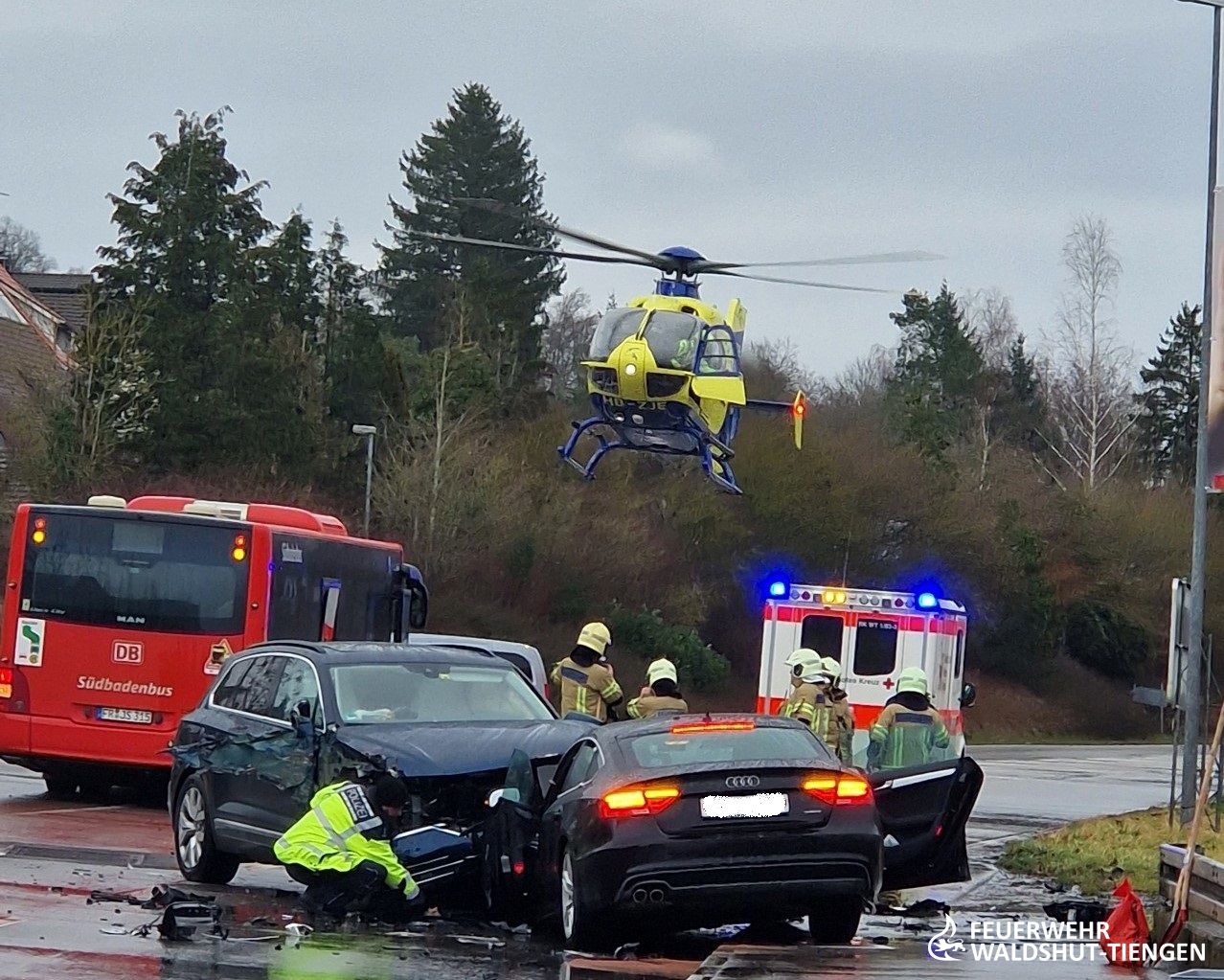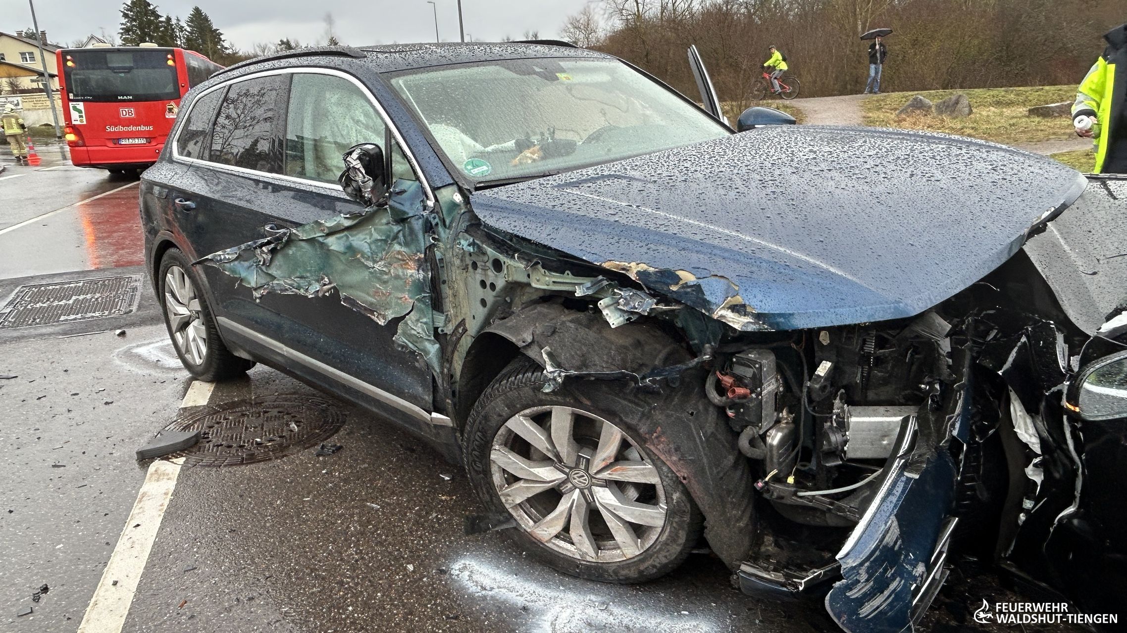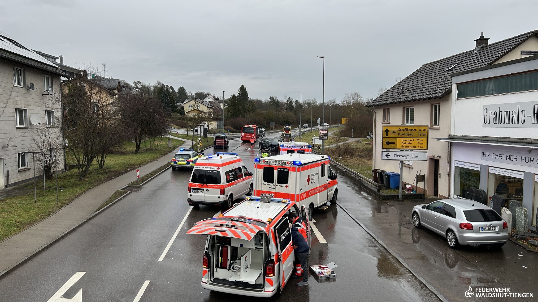Innerhalb des Stadtteils Tiengen waren in Fahrtrichtung Lauchringen auf der B34, zwei PKW miteinander frontal kollidiert. Auch ein Linienbus wurde in den Unfall verwickelt. Der Rettungsdienst war mit mehren Fahrzeugen und einem Notarzt an der Einsatzstelle. Die Insassen der Fahrzeuge waren nicht eingeklemmt. Die Feuerwehr hatte die Aufgabe die Einsatzstelle abzusichern und auslaufende Betriebsmittel aufzufangen und zu binden.