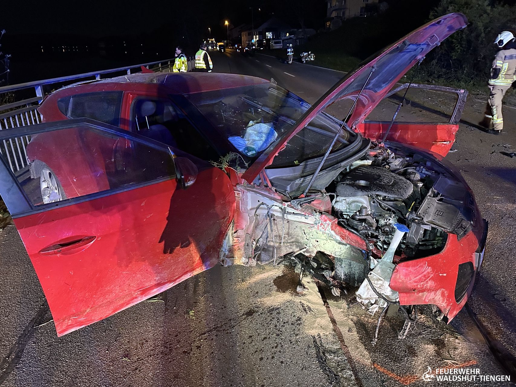 Alleinbeteiligt war ein PKW heute Nacht verunfallt. Der Fahrer war nicht ansprechbar und war bei Ankunft der Feuerwehr bereits aus dem verunfallten Fahrzeug geholt worden. Die Feuerwehr sicherte die Einsatzstelle ab und hatte diese auch ausgeleuchtet. Der Rettungsdienst und Notarzt versorgte den Patienten und hatte diesen in ein Krankenhaus gebracht.