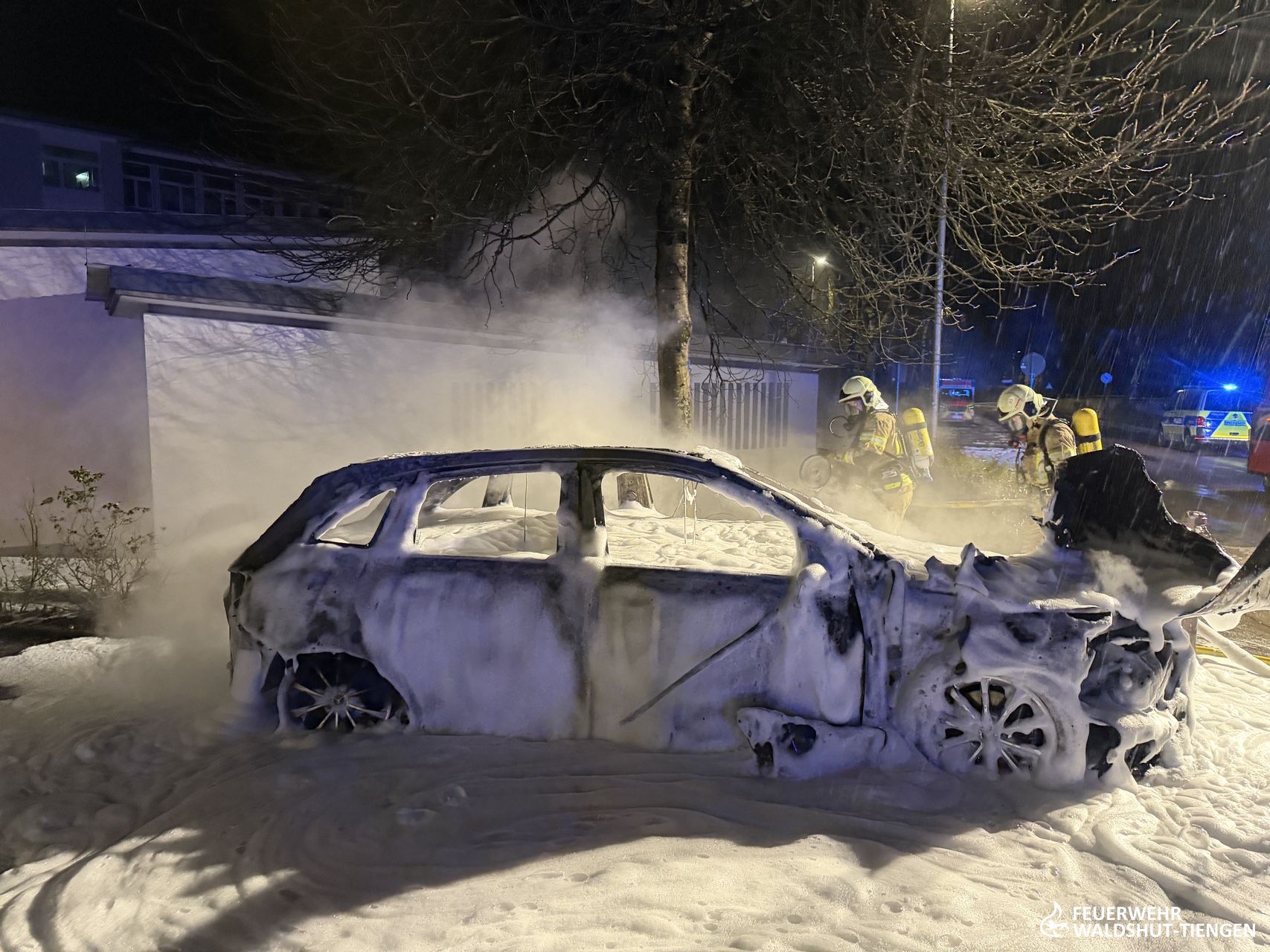 In der heutigen Nacht wurde die Feuerwehr zu einem brennenden Fahrzeug in Waldshut alarmiert. Beim Eintreffen der Einsatzkräfte stand das Fahrzeug bereits in Vollbrand.