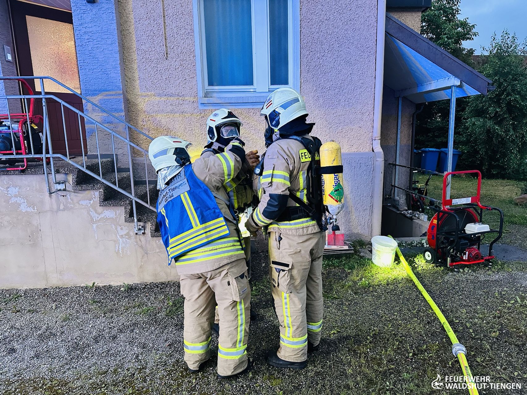 In den frühen Morgenstunden wurde der Löschzug der Feuerwehr nach Tiengen alarmiert. Dort wurde in einem Mehrfamilienhaus ein Brand im Keller gemeldet. Beim Eintreffen der ersten Einsatzkräfte war deutlich Rauch aus dem Keller wahrzunehmen. Die Bewohner des Gebäudes wurden durch die ausgelösten Rauchwarnmelder gewarnt und sind ins Freie gegangen.