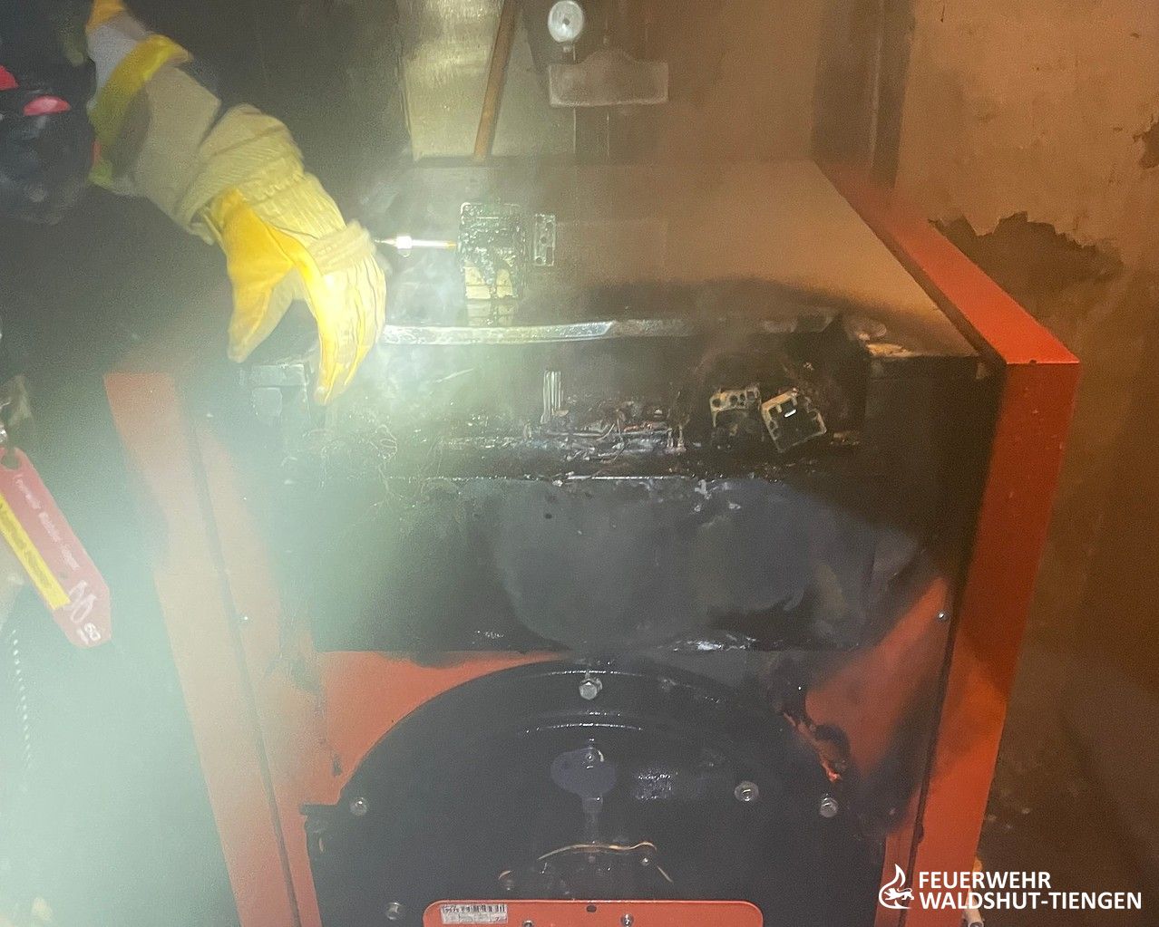 Heute wurden wir zu einem Kellerbrand alarmiert. Schon von weitem war eine schwarze Rauchsäule über Tiengen zu sehen. Unter umluftunabhängigem Atemschutz und Vornahme eines C-Hohlstrahlrohr wurde ein Brand der Ölheizung rasch unter Kontrolle gebracht und abgelöscht. Im Anschluss wurde das Gebäude noch belüftet und dem Betreiber übergeben.