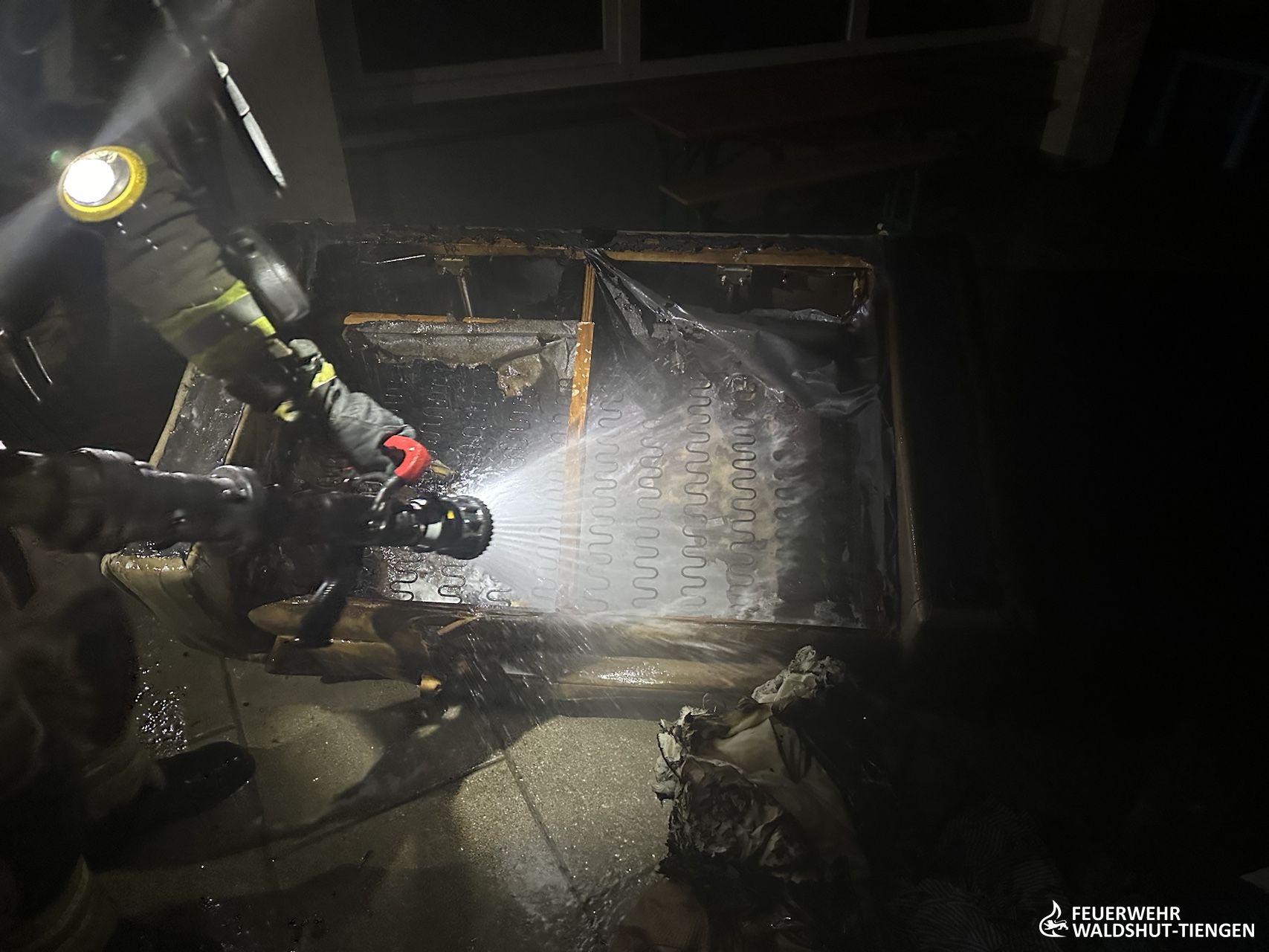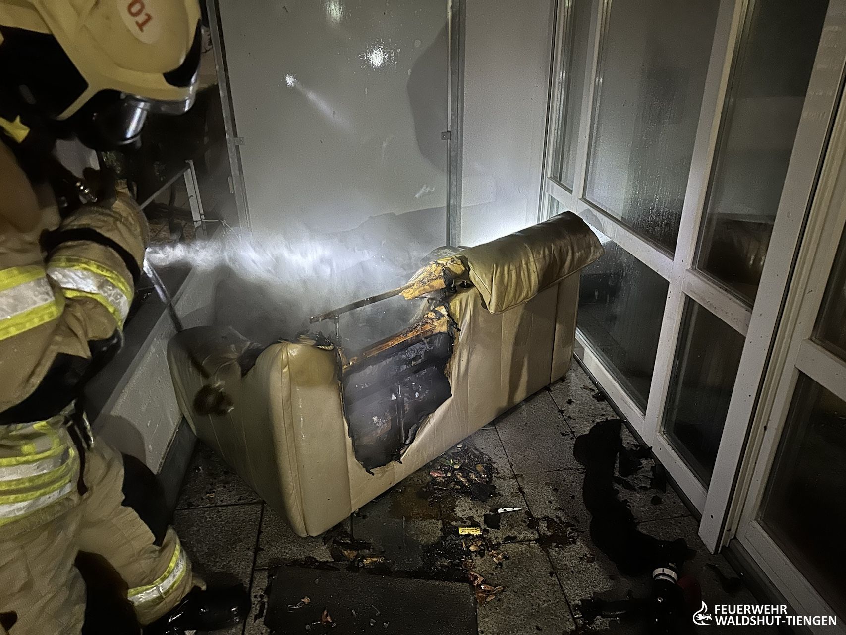 Heute um kurz nach Mitternacht, wurde wir in den Stadtteil Waldshut alarmiert. Auf einem Balkon eines Mehrfamilienhauses hatte es gebrannt. Ein Trupp unter umluftunabhängigem Atemschutz und Vornahme eines C-Hohlstrahlrohr, war in die verrauchte Wohnung vorgedrungen und hatte den Brand rasch lokalisiert und abgelöscht. Ein auf dem Ballkon stehendes Sofa war in Brand geraten. Das Sofa wurde abgelöscht und vom Balkon geräumt und die verrauchte Wohnung noch belüftet.