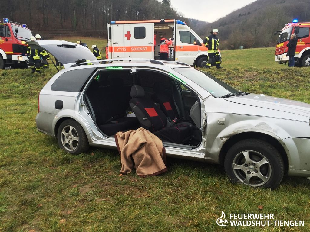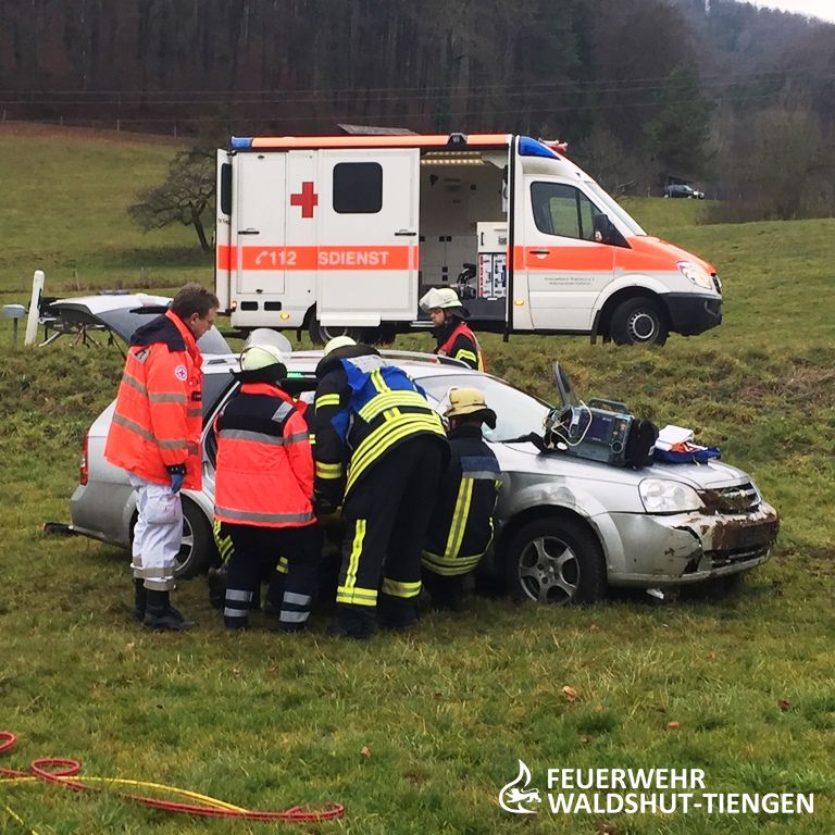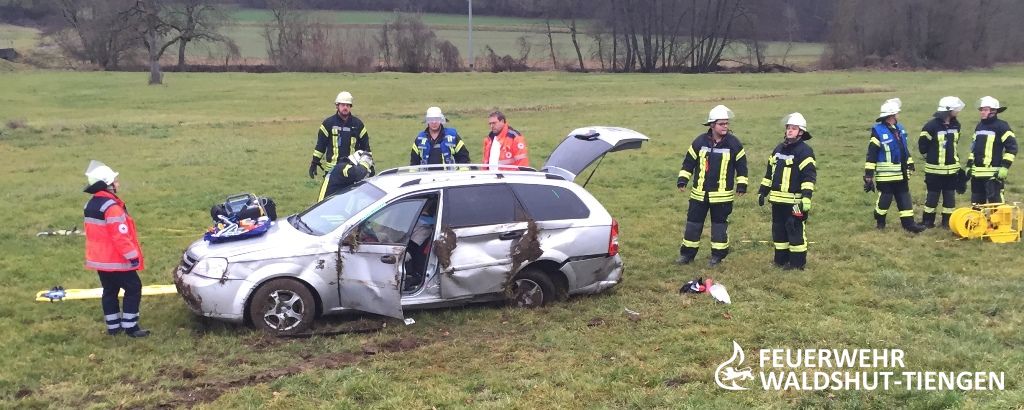 Nachdem sich zwei PKW auf der Verbindungsstraße Detzeln - Tiengen aus noch nicht bekannten Gründen streiften, war einer der beiden von der Fahrbahn abgekommen und über den Grünstreifen in einem Feld zu stehen gekommen.