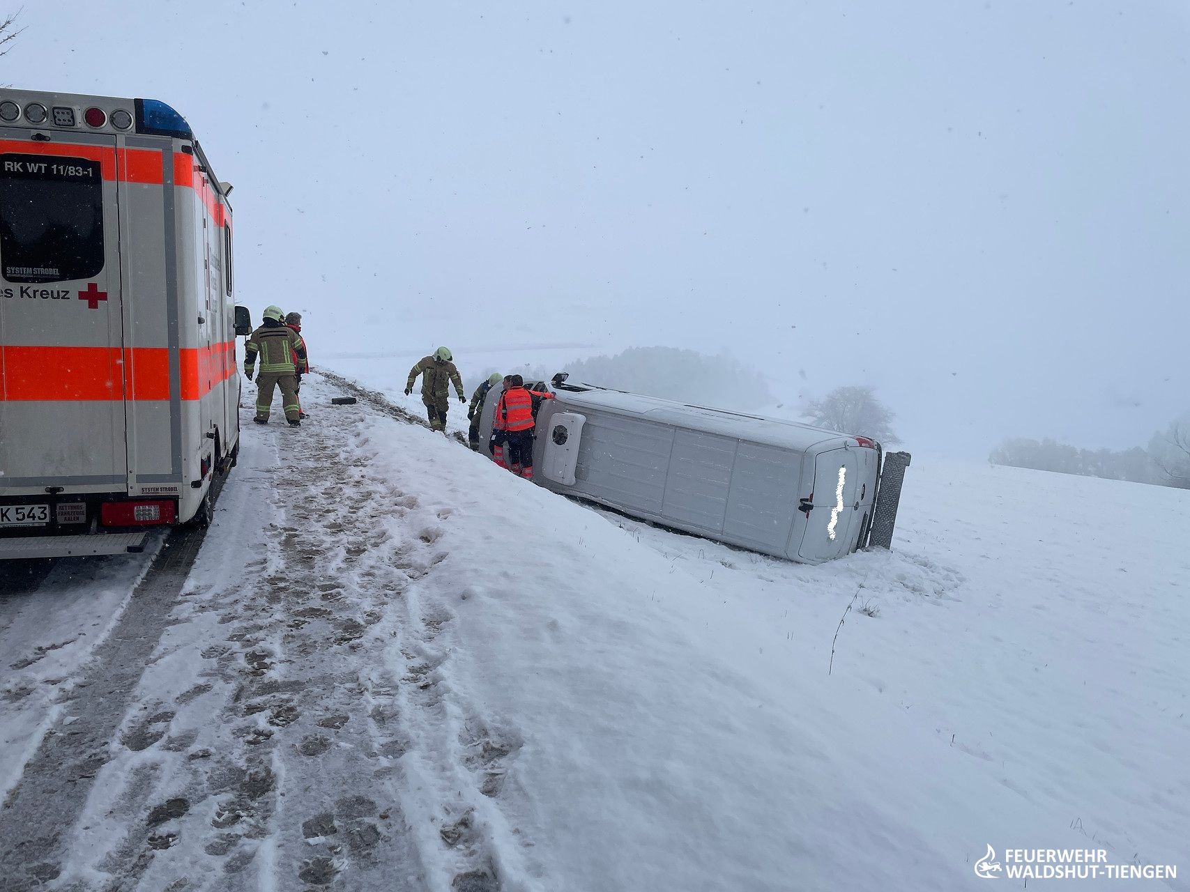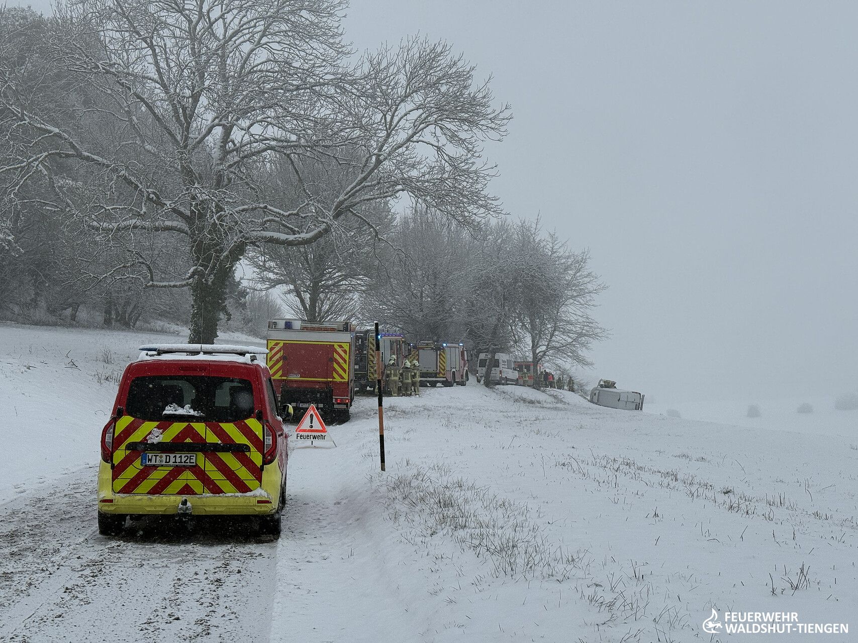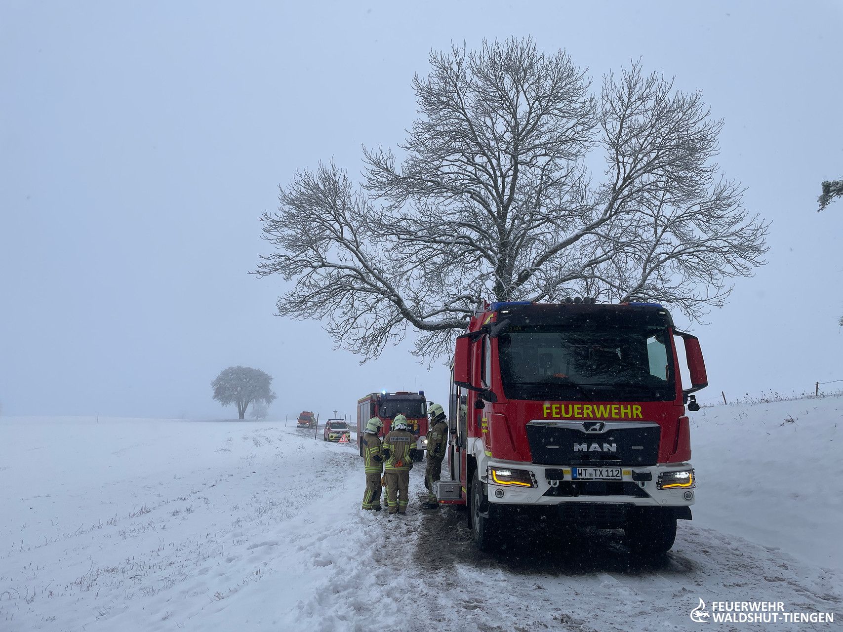 Die Anfahrt gestaltete sich aufgrund der winterlichen Straßenverhältnisse schwierig. Die Einsatzstelle befand sich auf einem verschneiten Feldweg. Beim Eintreffen der Feuerwehr stellte sich heraus, dass der Fahrer glücklicherweise nicht eingeklemmt war. Durch die Seitenlage des Fahrzeugs war er lediglich eingeschlossen, konnte das Fahrzeug jedoch ohne technische Rettung verlassen werden.