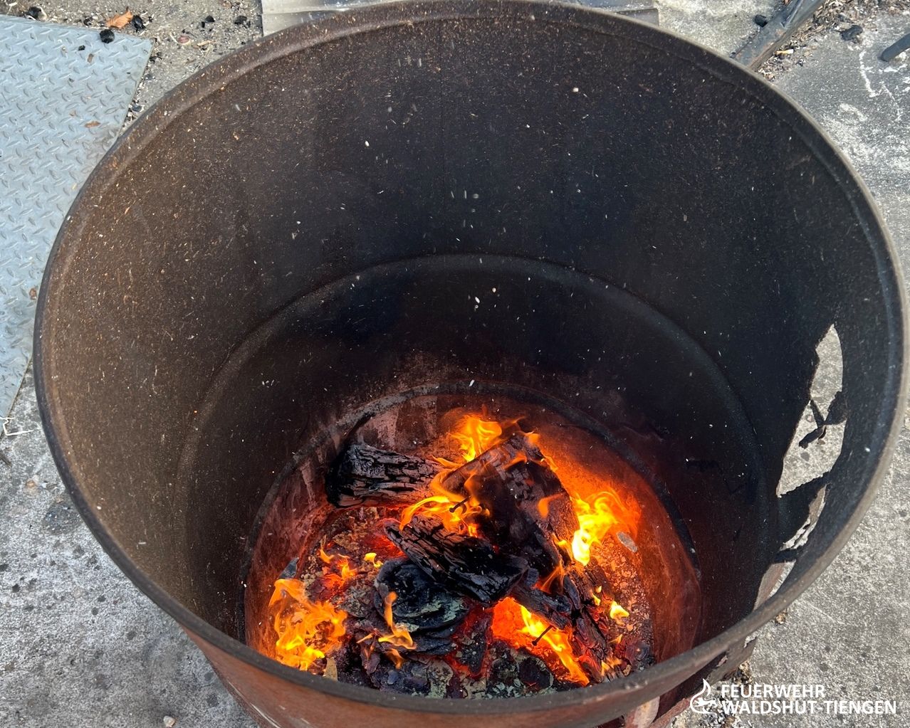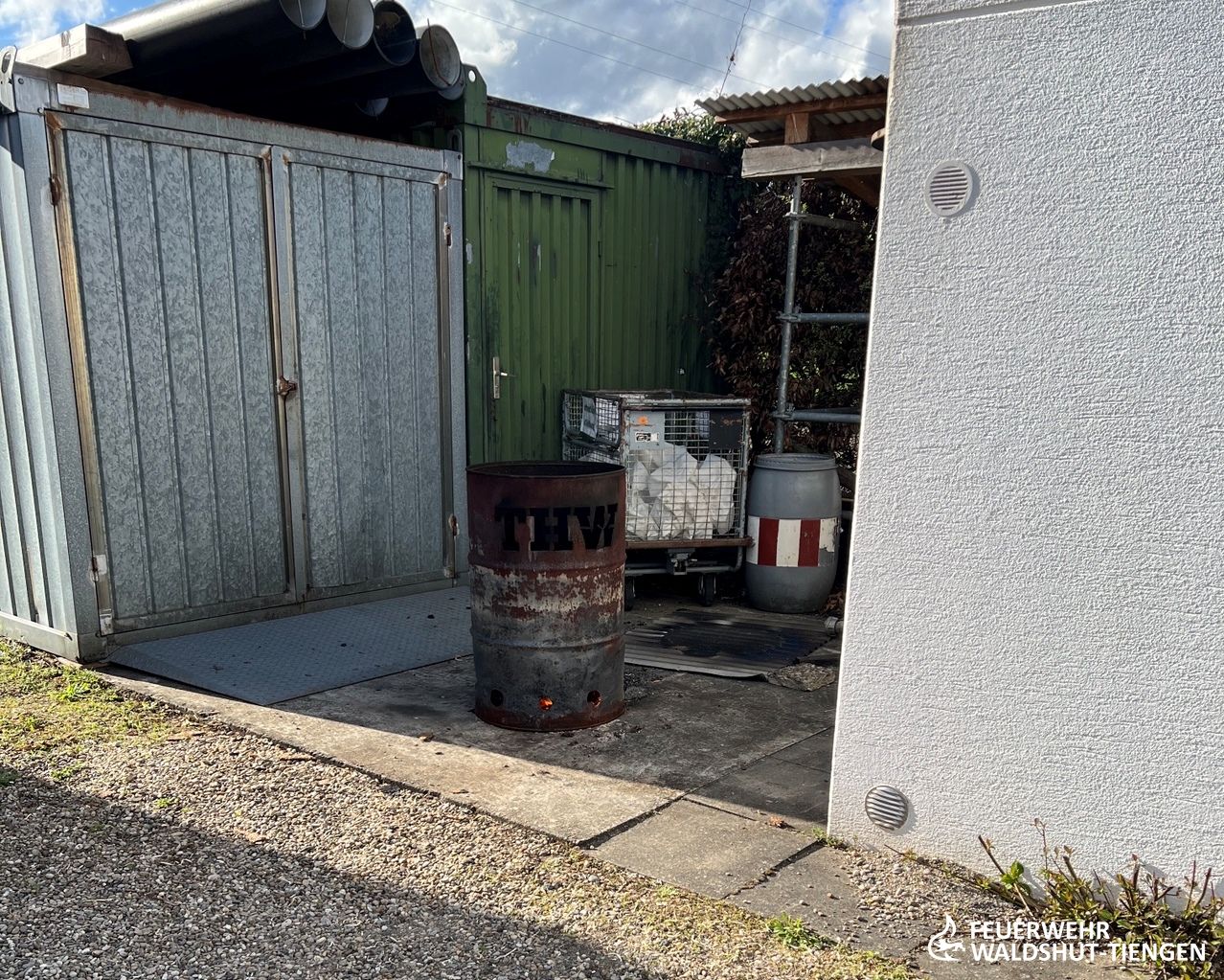 Während eines laufenden Einsatzes im Stadtteil Tiengen kam es im Industriegebiet Kaitle zu einem Paralleleinsatz. Auf dem Gelände der Kollegen des Technischen Hilfswerk (THW) wurde eine Rauchentwicklung aus dem Garagenbereich gemeldet. Während weitere Kräfte alarmiert wurden, konnten erste Kräfte an der Einsatzstelle in Tiengen bereits abrücken und die Einsatzstelle anfahren. Schnell konnte Entwarnung gegeben werden, da die Rauchentwicklung nicht aus den Garagen gekommen ist, sondern aus einem Feuerfass, welches zwischen den Garagen stand. Die Feuerwehr musste nicht weiter eingreifen und konnte die Einsatzstelle den Kollegen des THW übergeben.