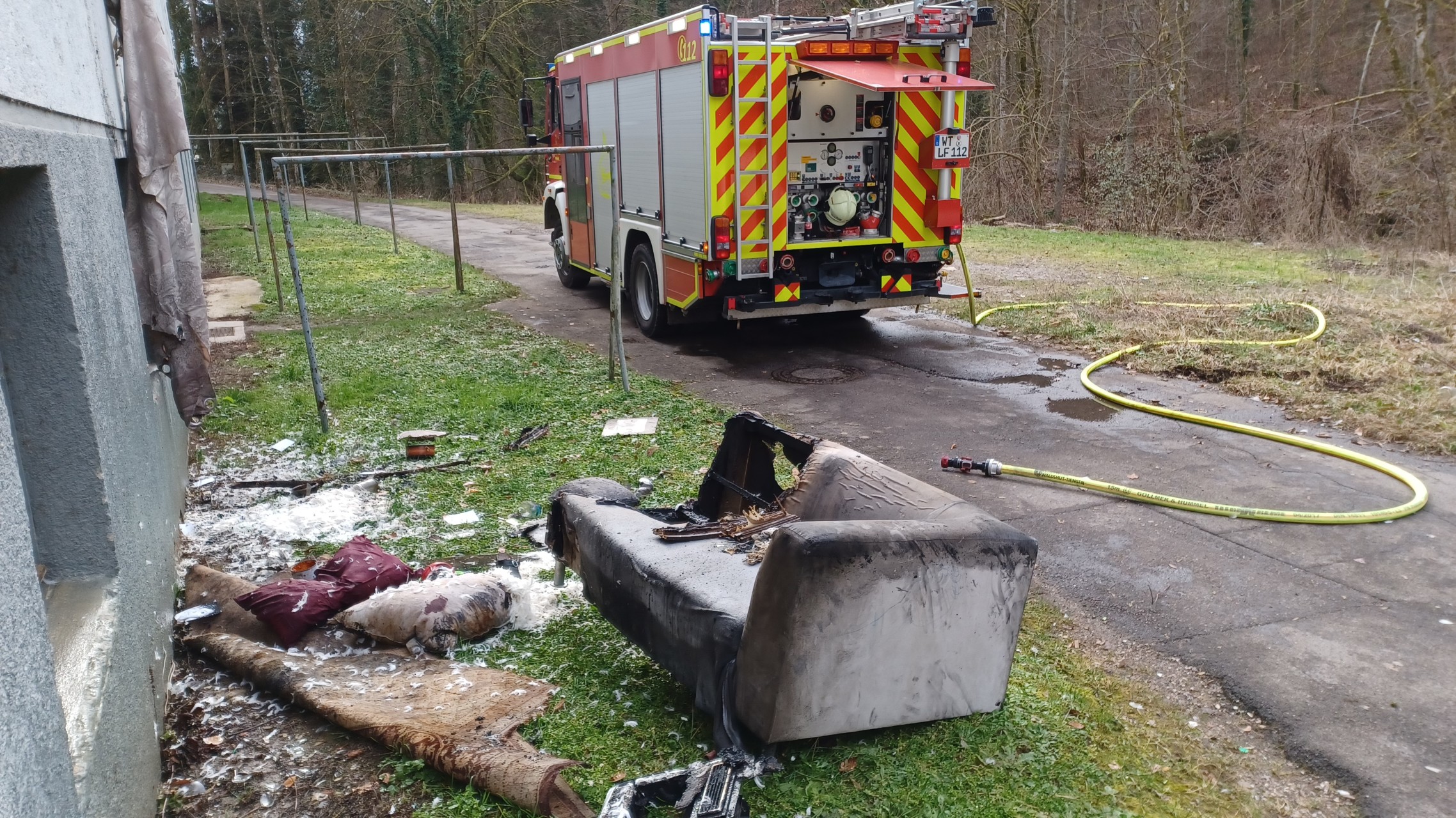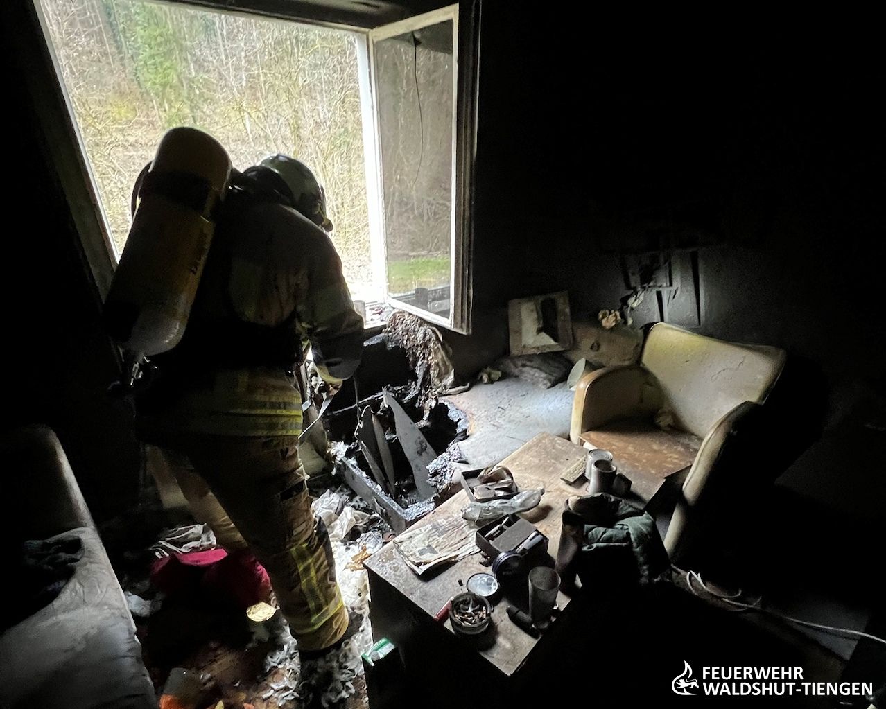 Am heutigen Vormittag wurde eine schwarze Rauchentwicklung aus der Wohnung eines mehrgeschössigen Sozialwohnungsbau gemeldet. Beim Eintreffen des Rettungsdienstes hatten diese eine Person vorgefunden, die schwarz-verust im Gesicht war. Ein weiterer Rettungswagen und Notarzt wurde an die Einsatzstelle alarmiert. Die Feuerwehr drang unter umluftunabhängigem Atemschutz und einem C-Hohlstrahlrohr in die Brandwohnung vor. Dort hatten sie gleich eine verruste und mit schweren Brandverletzungen liegende Person vorgefunden. Diese wurde unmitelbar ins Freie gebracht und dem Rettungsdienst und Notarzt übergeben. Der Brandraum wurde belüftet und letzte Glutnester abgelöscht. Ein Sofa in der Wohnung war in Brand geraten. Die Feuerwehr hatte den Brandschutt ausgeräumt und die Einsatzstelle letztlich an die Polizei übergeben, diese hatten mit den Ermittlungen begonnen. Die schwerverletzte Person wurde in eine Klinik außerhalb des Landkreises geflogen.