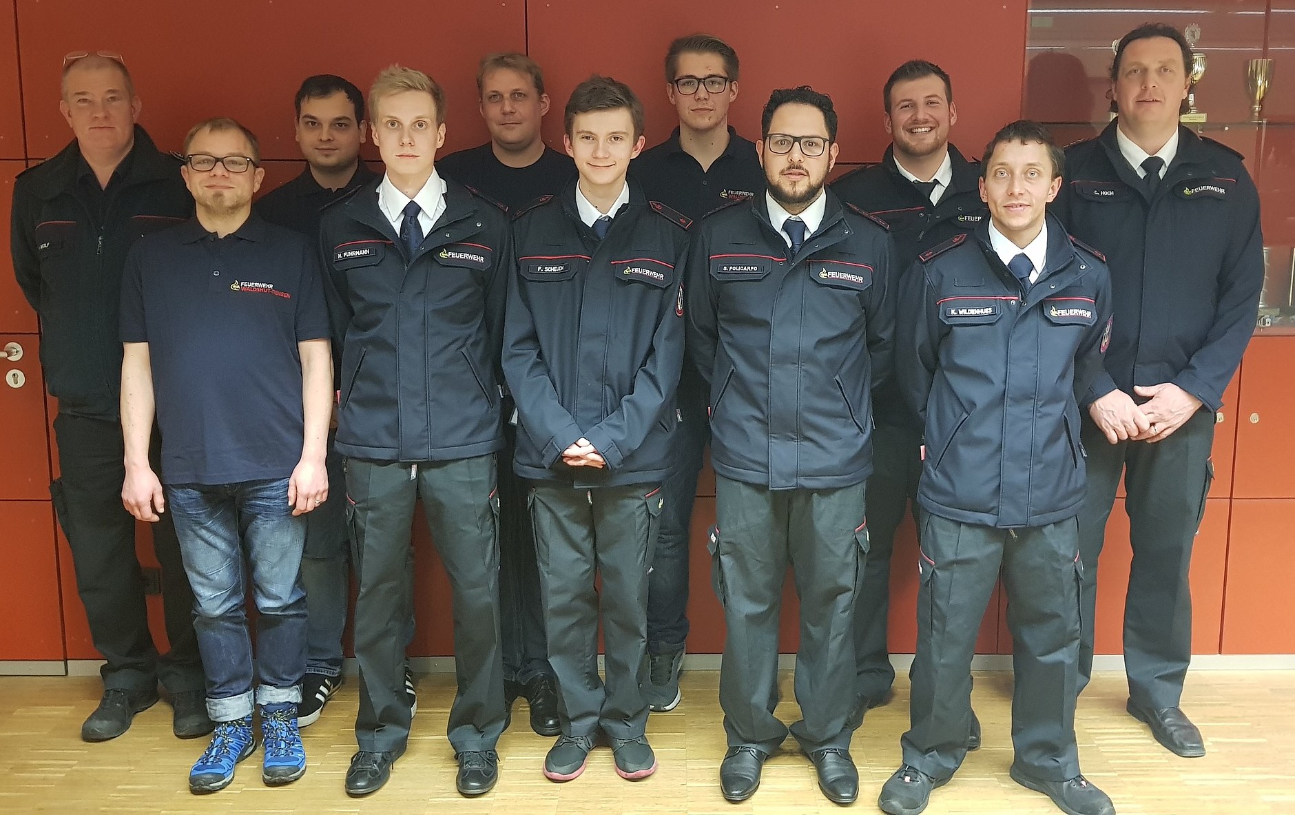 Die Feuerwehrangehörigen Peter Rührlehner, Patrick Dunne, Matthias Dinkle, Mirko Fuhrmann, Kai Wildenhues und Fabian Scheuch wurden nach absolvierter Grundausbildung zum Feuerwehrmann befördert. Salvatore Woop-Policarpo konnte aufgrund seiner Zugehörigkeit und der absolvierten Lehrgänge zum Hauptfeuerwehrmann befördert werden. Erfreulicherweise konnten wieder neue Feuerwehrmitglieder in die Reihen der Aktiven aufgenommen werden. So verstärken Lee-Roy Vetter, Darius Bortone und Marius Pererea die aktive Mannschaft.