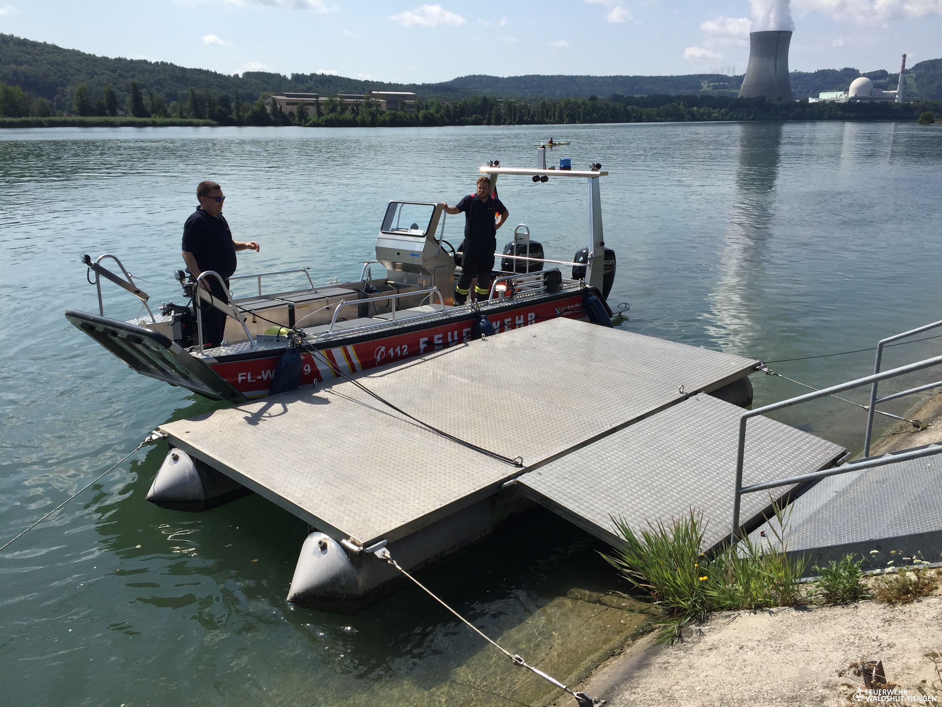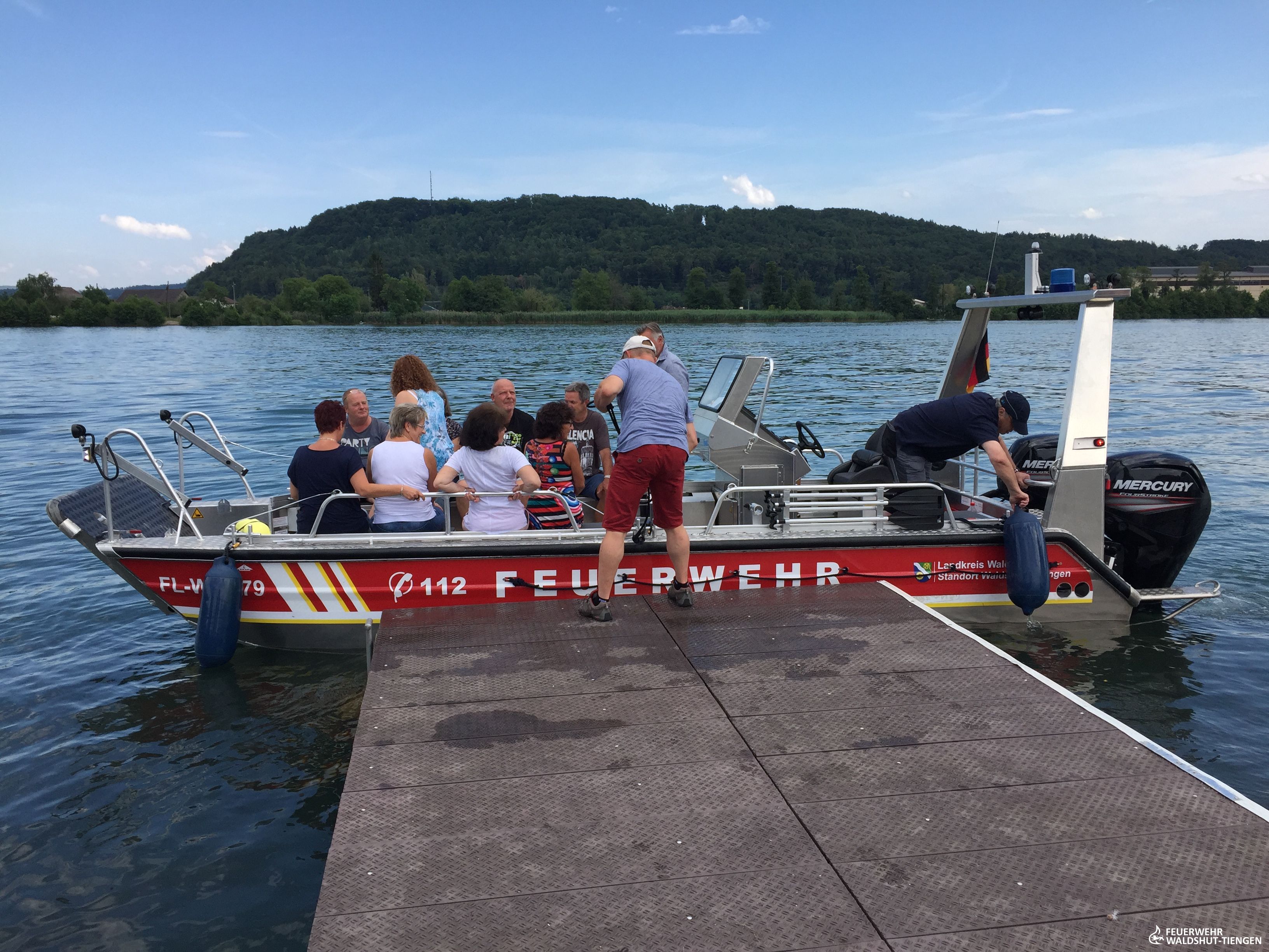 Am Samstagnachmittag fiel die Ausbildung mit dem Sommerfest des Motorboot-Club-Hochrhein zusammen. Die Clubmitgliedern waren sehr am Feuerwehrboot interessiert und es wurden einige Probefahrten durchgeführt.