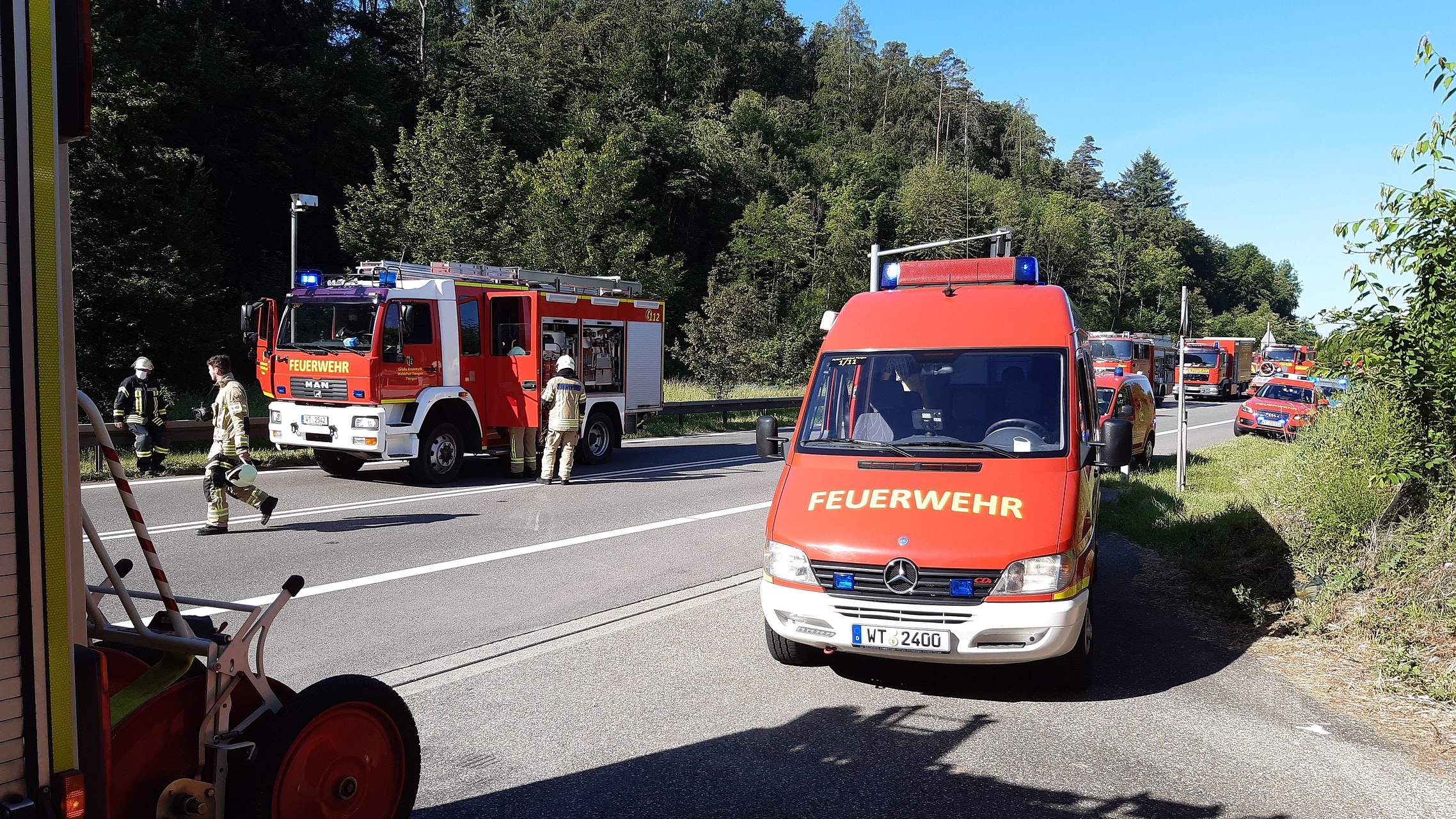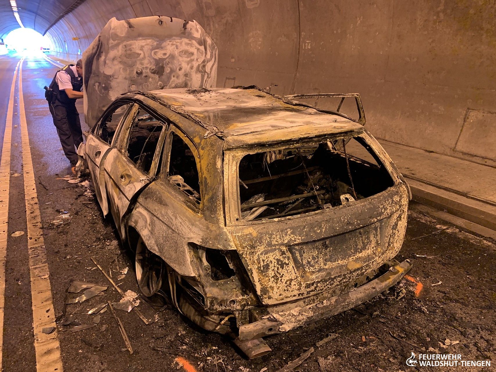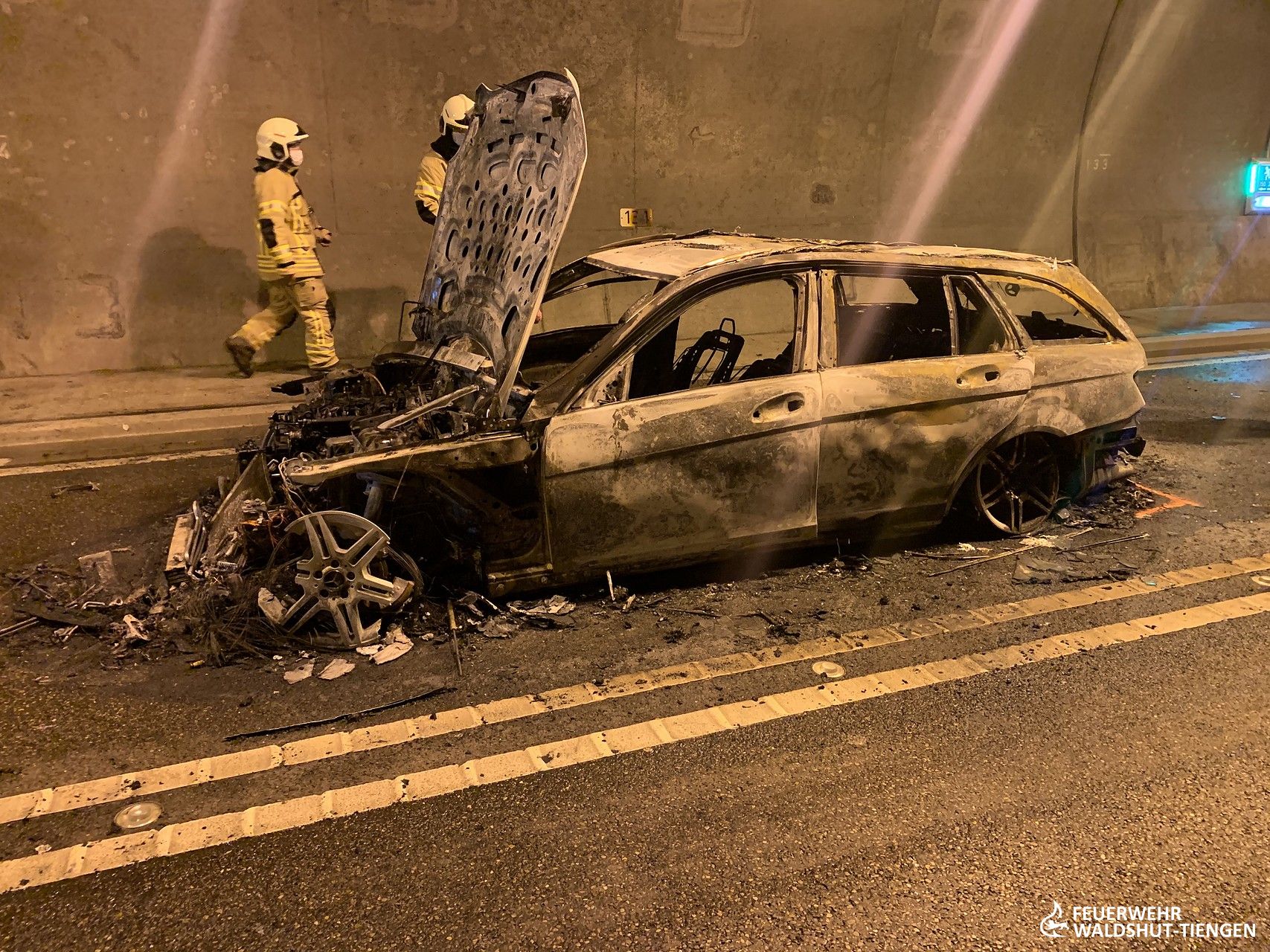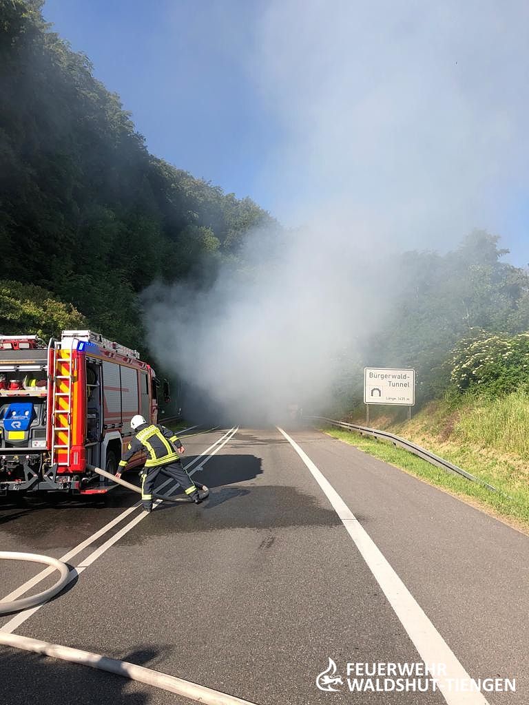 Um kurz nach 8 Uhr am Dienstagmorgen hatte uns eine Alarmierung in den Bürgerwalttunnel erreicht. Ein PKW im Tunnel, ca. 100m vor der Ausfahrt West, stand aus bislang ungeklärten Gründen in Flammen. Die Integrierte Leitstelle hatte die Feuerwehr Waldshut-Tiengen sowie Kräfte der Feuerwehr Lauchringen, Wutöschingen, Küssaberg und Dogern alarmiert.