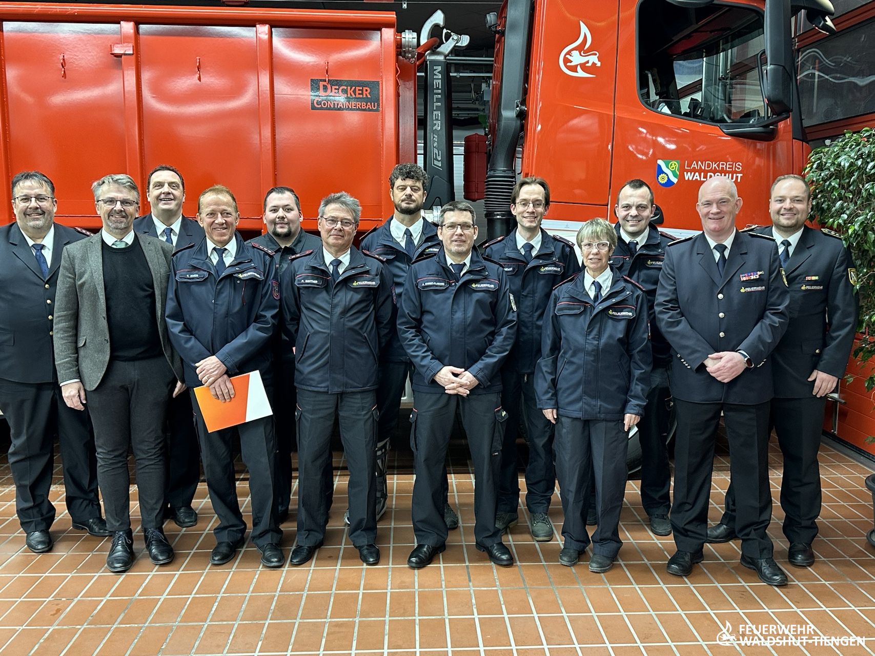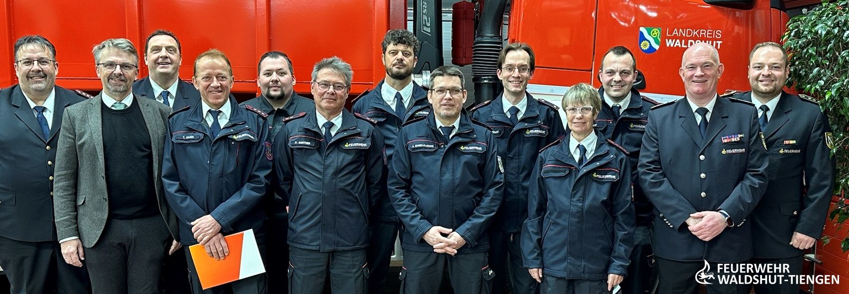 Die Mitglieder der Feuerwehr Waldshut-Tiengen trafen sich am vergangenen Montagabend im Feuerwehrgerätehaus Kaitle zu ihrer Hauptversammlung. Nach der musikalischen Einstimmung durch den Musikzug St. Florian und im Beisein von Oberbürgermeister Martin Gruner,freute sich Kommandant Peter Wolf, dass so viele Feuerwehrmitglieder und Gäste der Einladung gefolgt waren. Nach Ablauf der 5jährigen Amtszeit des Feuerwehrausschusses, wurde dieser im Anschluss in geheimer Wahl gewählt. In den Feuerwehrausschuss wurden gewählt: Timo Senn, Andreas Tröndle (EA West), Markus Müller, Sebastian Strittmatter (ES Ost, Florian Hauser, Matthias Hauser (EA Gurtweil), Dominik Landwehr, Nadja Zastrow (ES Tiengen) und Markus Berst, Thomas Pesch (ES Waldshut).