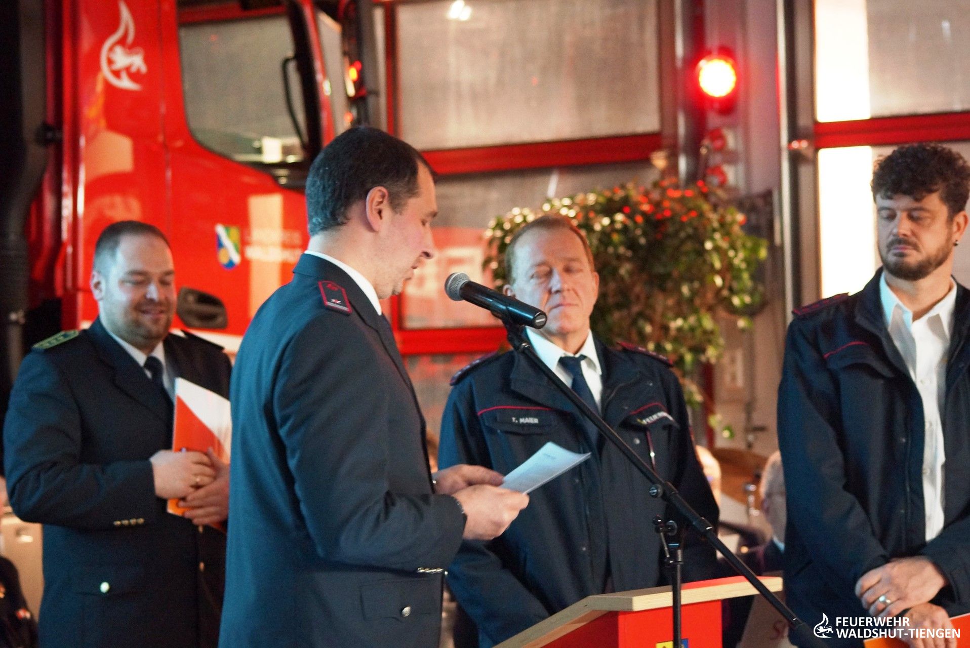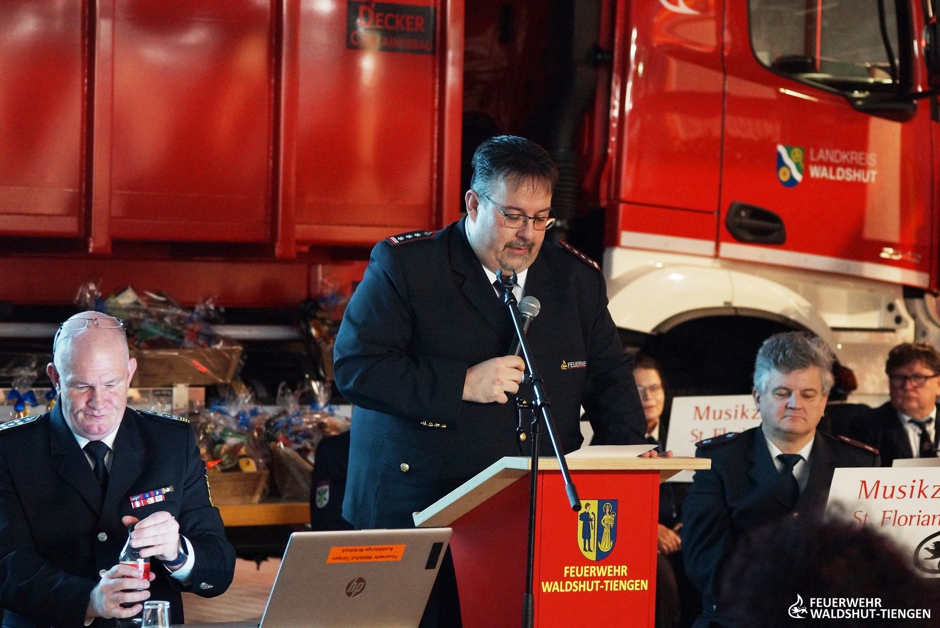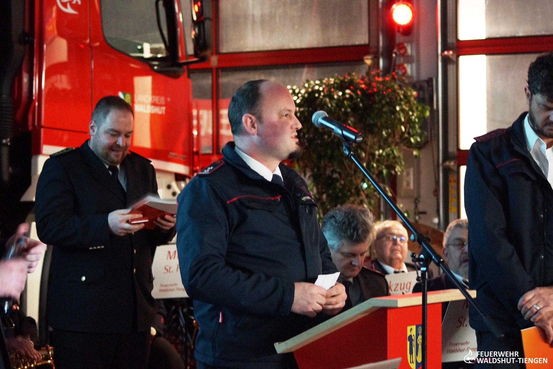 >Grußworte: Der Oberbürgermeister Martin Gruner lobte die Feuerwehr und dankte ihnen für ihren Einsatz für die Allgemeinheit. Er sei stolz auf seine Feuerwehr und deren Engagement zu jeder Zeit. Er freute sich, dass der Umzug ins neue Feuerwehrgerätehaus Waldshut noch vor Weihnachten geklappt hatte und wünscht der Abteilung stets eine gesunde Rückkehr von Einsätzen. Die Stadtverwaltung und der Gemeinderat waren sich einig, als es um die Anpassung der Entschädigungssatzung der Feuerwehr ging und hatten dieser grünes Licht gegeben.