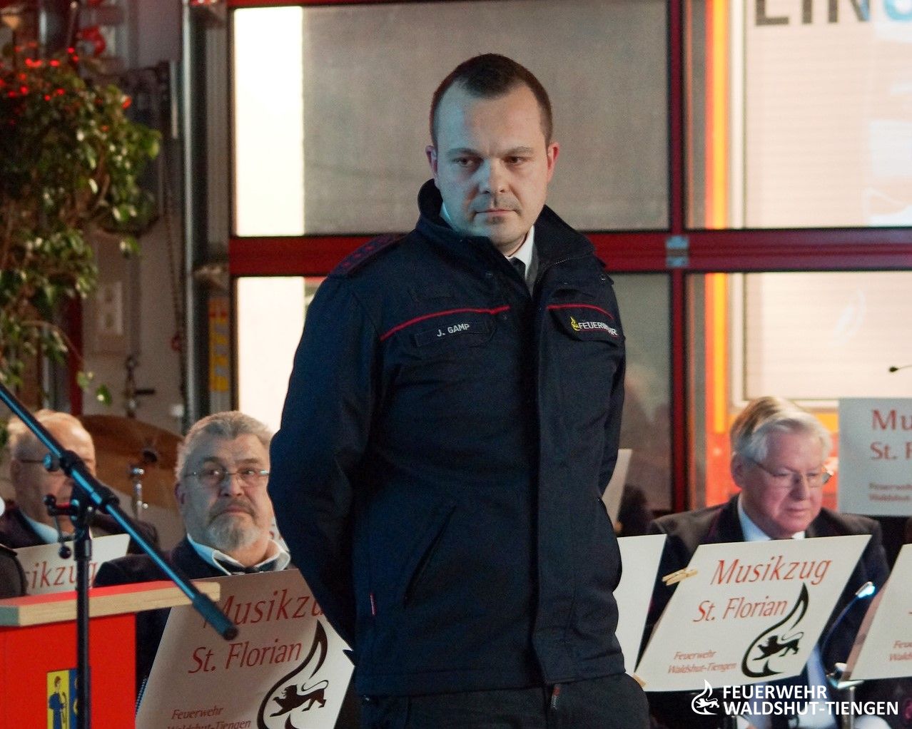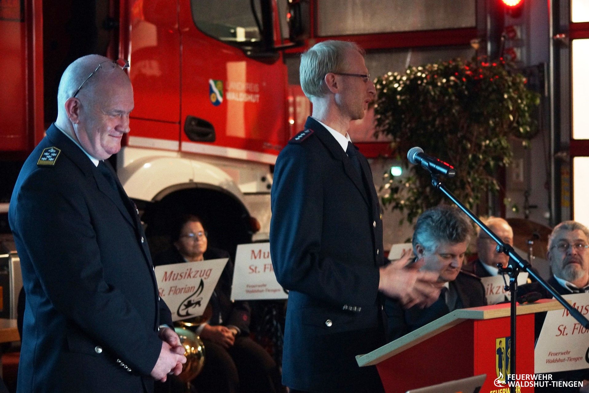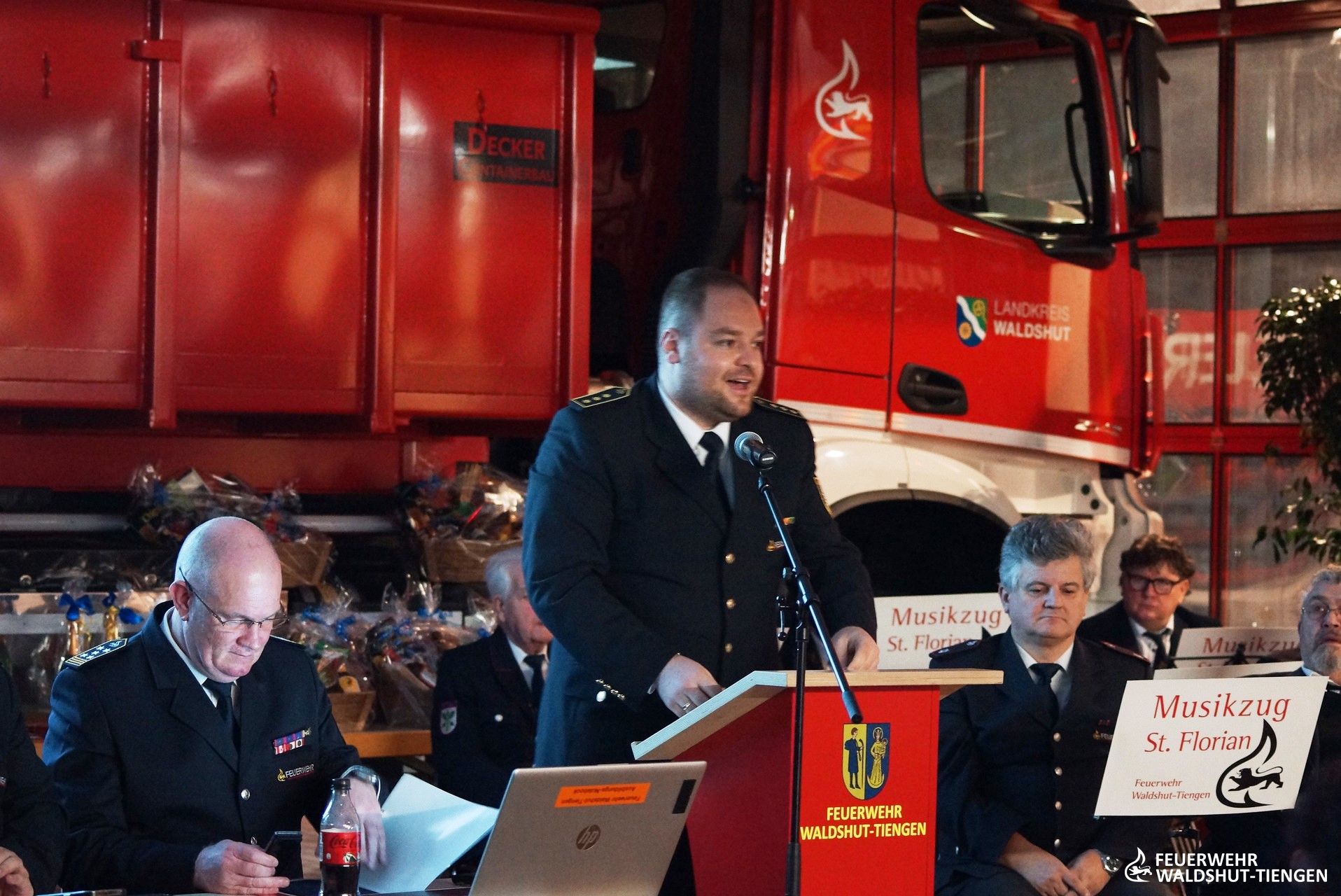 >Grußworte: Der Oberbürgermeister Martin Gruner lobte die Feuerwehr und dankte ihnen für ihren Einsatz für die Allgemeinheit. Er sei stolz auf seine Feuerwehr und deren Engagement zu jeder Zeit. Er freute sich, dass der Umzug ins neue Feuerwehrgerätehaus Waldshut noch vor Weihnachten geklappt hatte und wünscht der Abteilung stets eine gesunde Rückkehr von Einsätzen. Die Stadtverwaltung und der Gemeinderat waren sich einig, als es um die Anpassung der Entschädigungssatzung der Feuerwehr ging und hatten dieser grünes Licht gegeben.