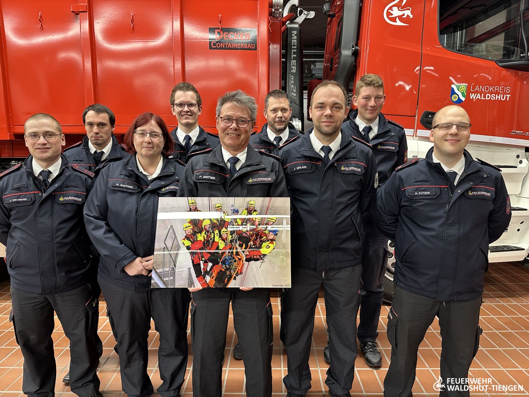 Tilo Maier übernahm die Leitung der Höhenrettungsgruppe von Peter Ganter. Dieser hatte die Gruppe 2004 gegründet und 2005 als anerkannte Höhenrettungsgruppe in Baden-Württemberg ausgebildet. |