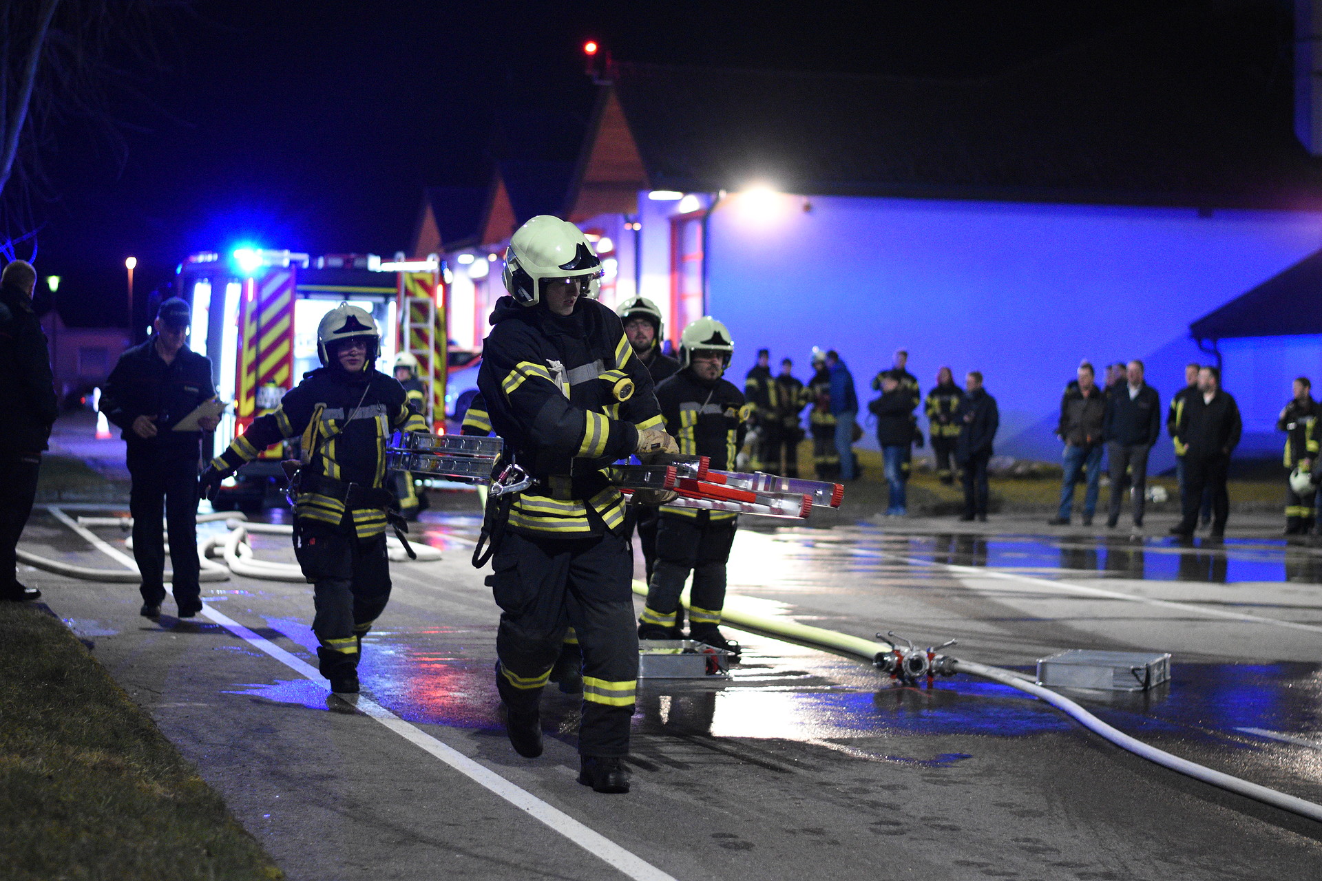 Die Gruppen mußten eine Wasserversorgung aus einem Unterflurhyedranten, die Vornahme von zwei C-Strahlrohren und die Rettung einer Person aus dem ersten Obergeschoß über eine Steckleiter zeigen.