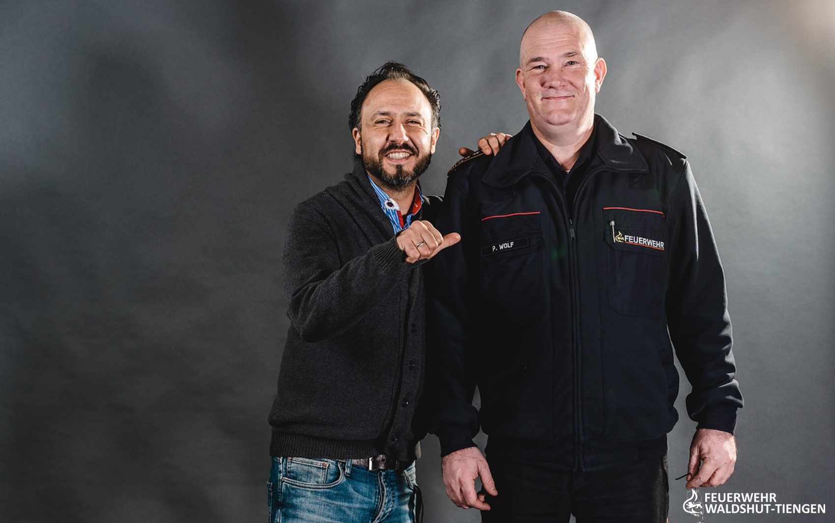 Während der Umsetzung wurden wir professionel durch Gilberto Cammisa von der Grafikagentur konkret.sign begleitet und unterstützt. Ideen wurden formuliert und umgesetzt. Die Programmierung übernahm Peter Opuchlik von der Firma Hochrhein-Informatik. Er verstand es, unsere Ideen in die Realität umzusetzen. Ein Wunsch und Ziel war es Fotos von eigenen Feuerwehrangehörigen zu zeigen. Nichts sollte aus einem Prospekt oder aus Fotodatenbanken kopiert werden, gleichzeitig sollte das neue Corporate Design der Stadt mit einfließen. Mit insgesamt 30 Feuerwehrfrauen und -männern sowie Mitgliedern der Jugendfeuerwehr wurde hierzu eigens ein Fototshooting organisiert. Fotograf war unser Feuerwehrmitglied Michel Sieber. Beim Fotoshooting entstanden mehr als 1000 Bilder, eine Auswahl der Besten ist nun zu sehen.