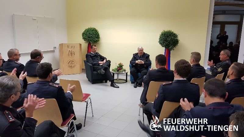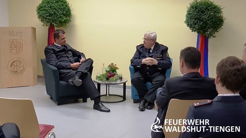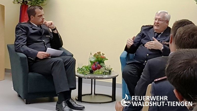 Der Präsident des Landesfeuerwehrverbandes Baden Württemberg, Dr. Frank Knödler, besuchte auf Einladung des Kreisfeuerwehrverbandes den Landkreis Waldshut. In einem lockeren Gesprächsautausch, moderiert von Tobias Förster, ging der Präsident auf die Fragen der Kommandanten und Bürgermeister des Landkreises ein.