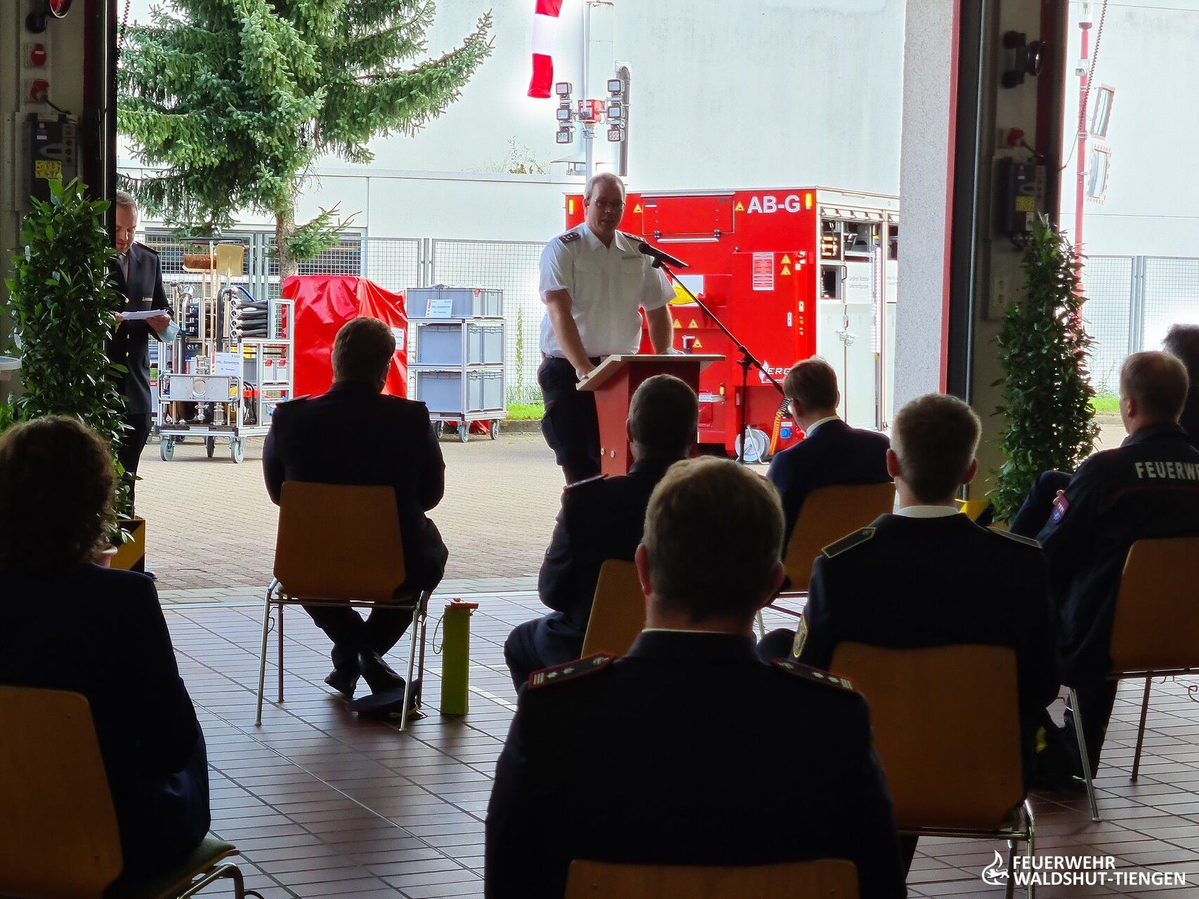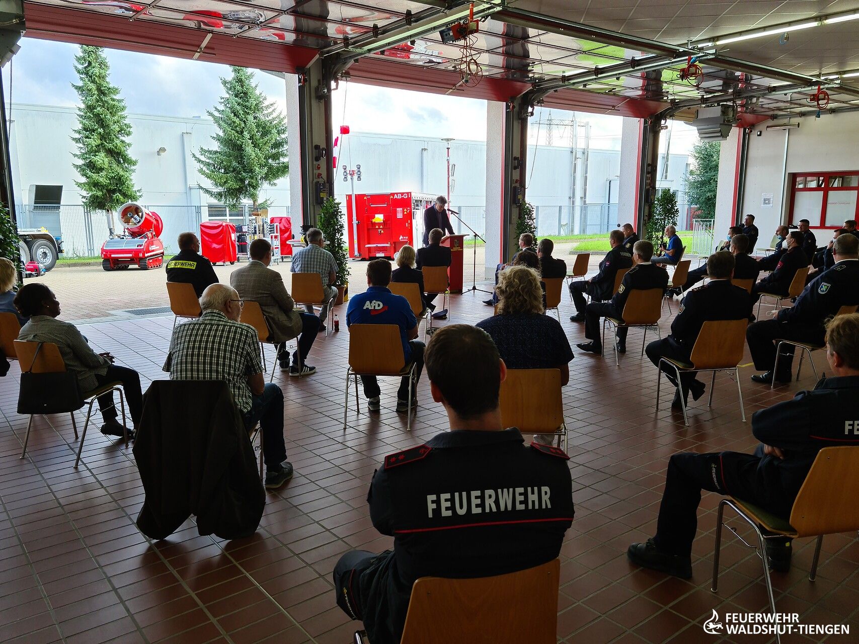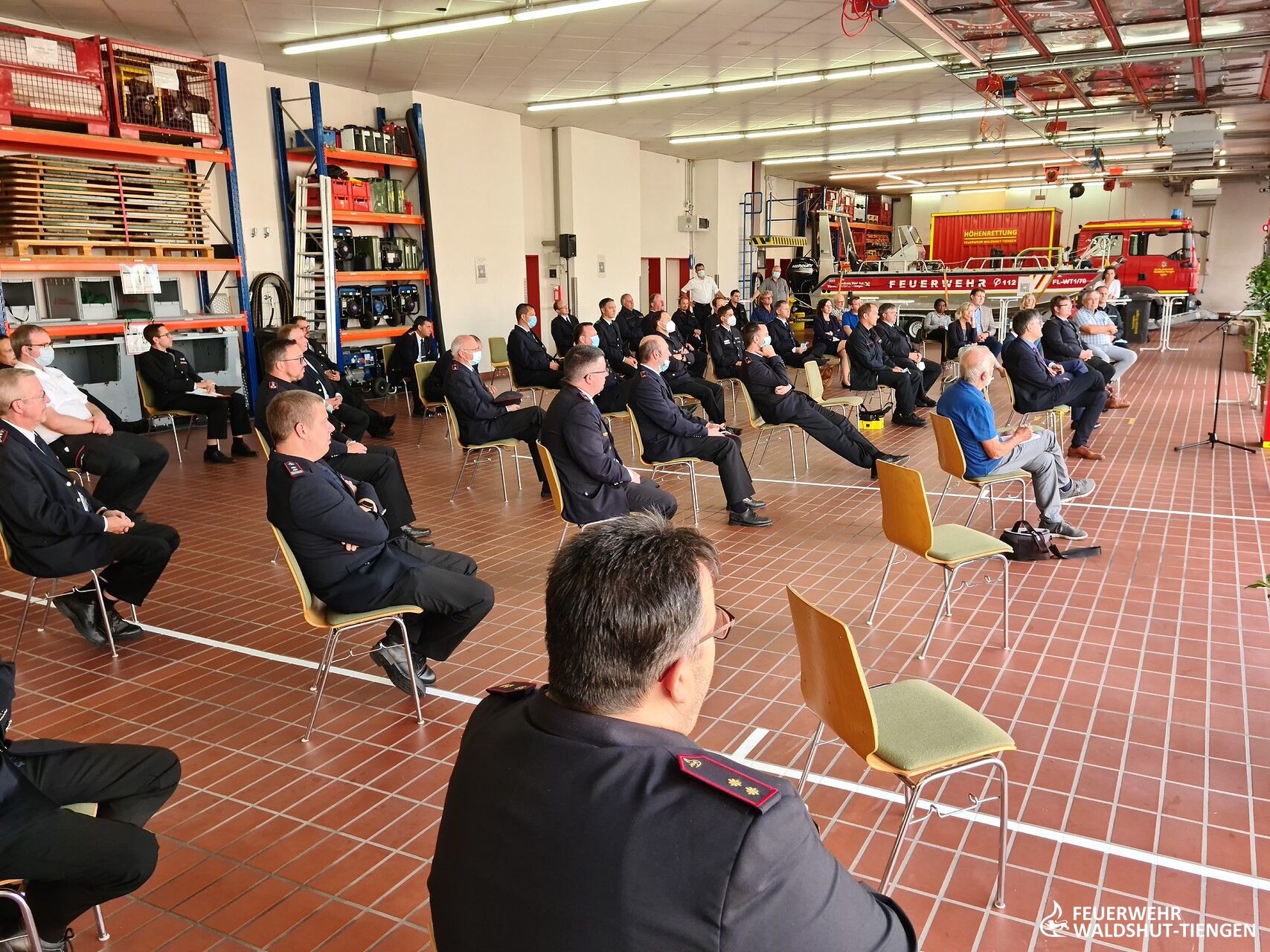 Neben den Kommandanten der Feuerwehren, waren auch die Bürgermeister der empfangenen Gemeinden, sowie Vertreter der verschiedenen Kreistagsfraktionen eingeladen. Bezirksbrandmeister Adrian Wiebel ließ es sich nehmen, einen letzten Besuch im Landkreis Waldshut einzulegen. Er wird künftig die Funktion im Regierungspräsidium Stuttgart übernehmen.